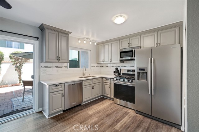 Situated in the highly sought-after Green Meadows community in Harbor City, this impeccable two-story condo offers a perfect blend of comfort and tranquility. Boasting 3 bedrooms, 1.5 baths, and 1,075 sqft of generous living space, this home offers the perfect setting for relaxing and entertaining. Wood-like floors and plenty of natural light flow throughout the home’s open and airy layout. The living room seamlessly transitions to the dining area, creating a welcoming atmosphere for family gatherings and memorable dinner parties. Step outside through the sliding glass doors and discover your own private outdoor patio retreat, an ideal space for hosting summertime barbecues. The kitchen will inspire your inner chef with its inviting ambience, ample cabinetry, and stainless steel appliances. Upstairs you'll discover three light and bright bedrooms, each offering a comfortable space for unwinding. The Green Meadows community showcases beautifully landscaped grounds and a sparkling pool, providing a refreshing oasis where you can soak up the California sun. You’ll enjoy the convenience of your 2-car shared garage, in-home laundry, and the great neighborhood near it all – shopping, schools, parks, and dining. This charming turnkey home is ready to make your own. Don't miss out on this opportunity to own your own home!