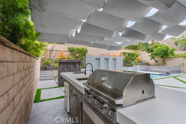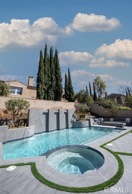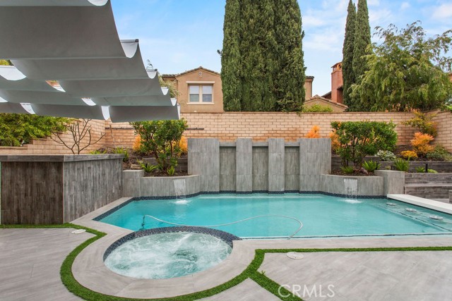 Available Now! Welcome to your luxurious retreat in the heart of Irvine. This stunning 5-bedroom, 5.5-bathroom home exudes modern elegance and sophistication at every turn. Step inside to discover an interior graced with contemporary touches and impeccable design. The heart of the home is the gorgeous white kitchen, featuring sleek cabinetry, high-end stainless-steel appliances, and ample counter space, perfect for both casual dining and entertaining guests. Venture outdoors to your own private oasis, where a resort-like backyard awaits. Relax and unwind on the spacious patio or under the Loggia. Gather around the gas firepit under the stars or take a refreshing dip in the sparkling pool surrounded by lush landscaping. The backyard oasis is further enhanced with a Swim-up bar and giant lighted fountain feature in the pool, perfect for entertaining and creating unforgettable memories. The soothing sounds of the waterfall cascading into the pool create a tranquil ambiance, ideal for indulging in moments of relaxation and rejuvenation. An outdoor kitchen features dishwasher, fridge, built-in BBQ, a Korean BBQ, ice maker, and sink. For those who appreciate luxury, this home also boasts Juliet's Balcony single-family popular plan 2, situated next to the Jeffrey Trail, providing scenic views and a serene atmosphere. Additionally, an En-Suite Casita with a separate entrance offers flexibility and privacy for guests or multi-generational living. The primary bedroom features a jet tub and closet organizers for added convenience and comfort. Plus, enjoy the benefits of a whole-house water softener system for enhanced water quality throughout. This home is also equipped with solar panels, ensuring energy efficiency and cost savings, as well as brand new carpet upstairs for added comfort and style. Woodbury community living offers unparalleled amenities including 7 resort-style pools and spas, fireplaces, barbecue areas, neighborhood gardens, sand volleyball, basketball, and tennis courts, ensuring there's always something to enjoy. Zoned for highly sought-after Woodbury Elementary, Jeffrey Trail Middle School, and Portola High School, this home offers access to top-tier education for families. Located in the prestigious Woodbury neighborhood of Irvine, this home offers a perfect blend of luxury, comfort, and convenience. Experience the epitome of California living in this exquisite residence.