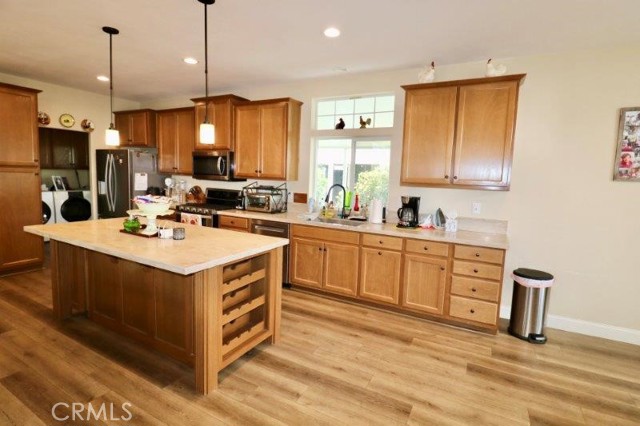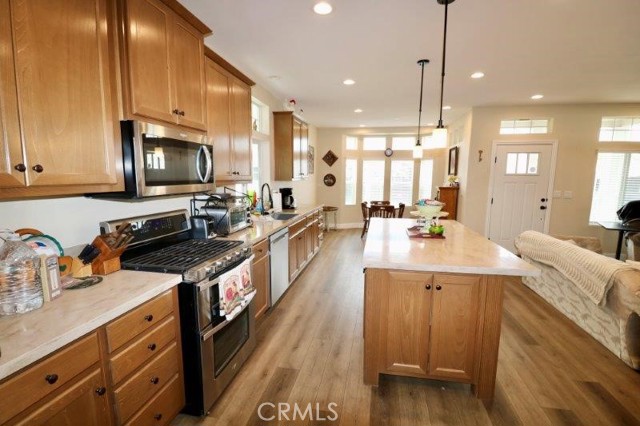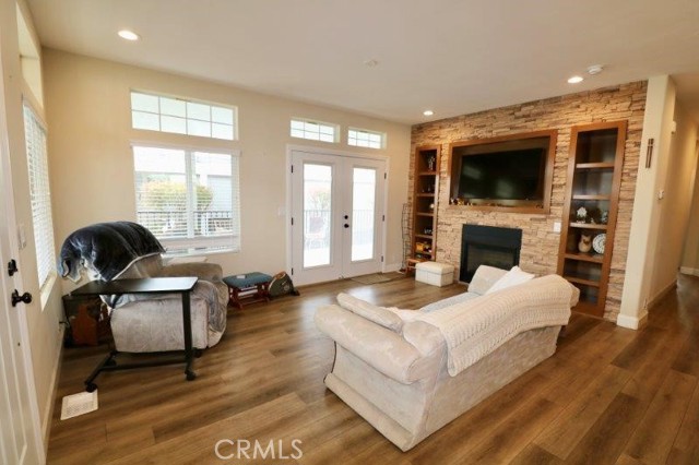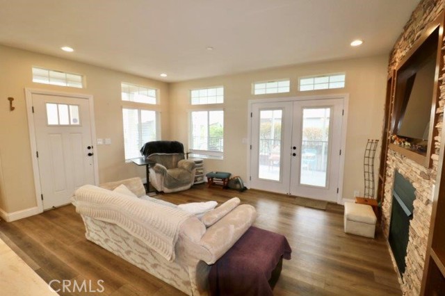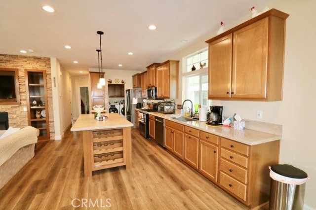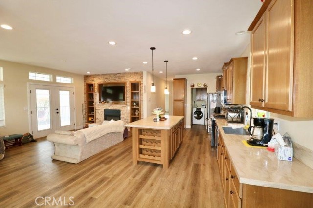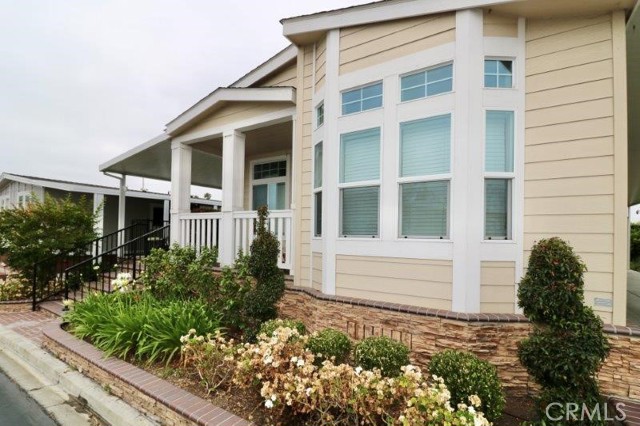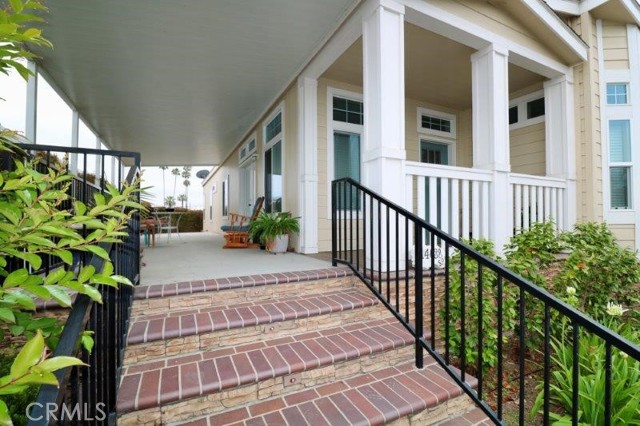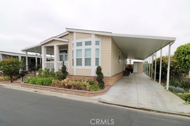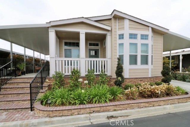 Senior Park community, featuring a Large Clubhouse Overlooking our Beautiful Lake Entrance. Manufactured in 2019. This is a Must See! Beautiful curb appeal. Awarded City of La Mirada Beautification Award. This 3 bedroom, 2 bath features an open concept living room with fireplace, dining room and kitchen with large island. The home sits high above the street with a lovely light up staircase to the entry, and large patio. Do not miss out on this beauty!