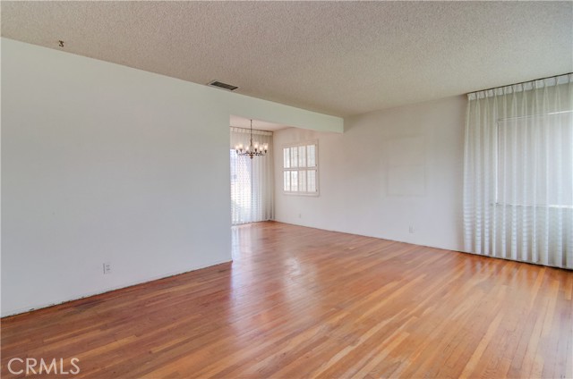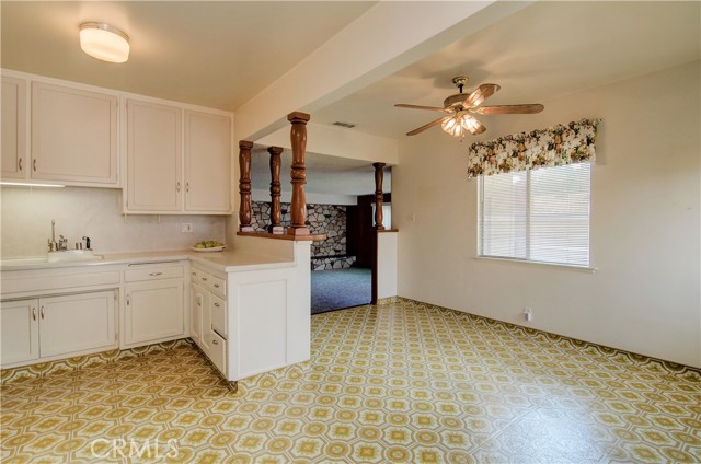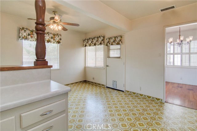 Fantastic purchase opportunity on this spacious 3 br 2 ba single story home located in an interior tract location. Beautiful original wood floors revealed throughout the home, formal living room, formal dining area with sliding glass doors, large kitchen with sun-filled eating area, separate step down family room with stone fireplace and sliding glass doors to backyard, huge primary bedroom with mirrored closet doors, primary bath with dual sink vanity and shower, forced air heating and central air conditioning, ceiling fans throughout, 2 car direct access garage with lots of storage space, ample driveway for extra parking, composition roof and great curb appeal. Don't miss out!