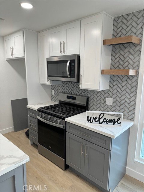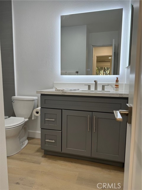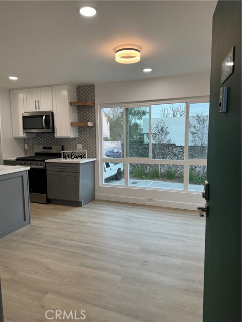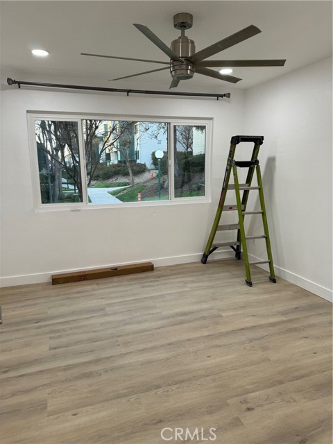 A FULL RENOVATION is underway in this beautiful 1-bed, 1-bath home in a quiet, gated community. Located on the lower level, this condo has gone through improvements from ceiling to floor, including a brand-new kitchen with stainless-steel appliances, new windows, recessed lights, ceiling fans with remotes, water-resistent laminate flooring, and an amazing, modern bathroom. The walk-in closet in the bedroom is exceptionally large to accommodate all of your storage needs. The HVAC system was just serviced and a new thermostat was installed. This unit has an additional sense of privacy as it is located along the outer edge of the complex with no neighbor windows facing directly into the living room (to the front) or dining room (to the back). Unlike buildings found in the center of the complex, parking for this unit is directly underneath it and accessed by a single staircase. It comes with 1 dedicated parking spot with an exterior storage locker, in addition to 1 guest parking pass. Per the HOA management company, community updates are in progress, which include exterior building paint and new gym features. The HOA fee also covers water and trash. Don't miss your opportunity to see this lovely home while final touches are being completed!