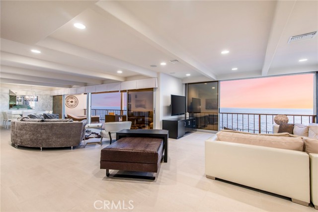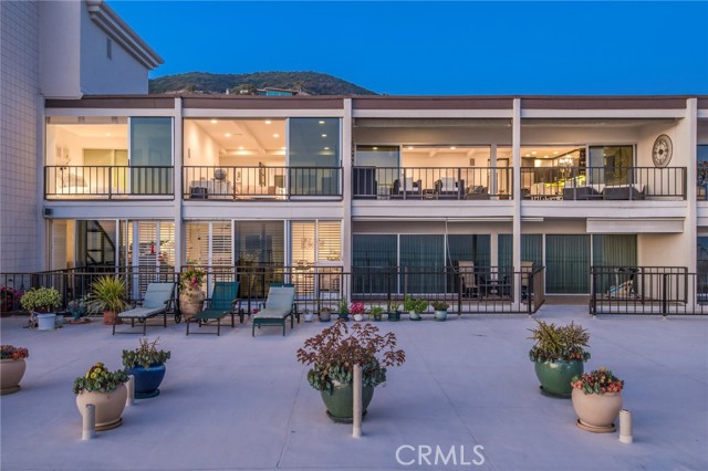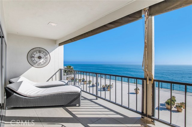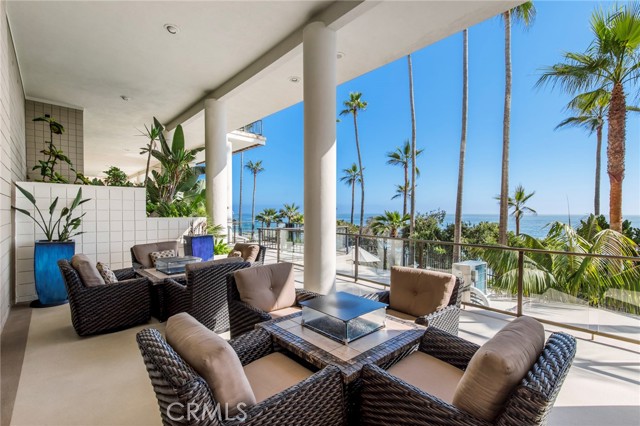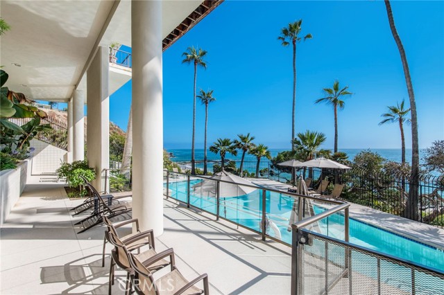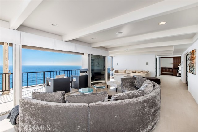 An opportunity to own a penthouse-level unit at the Laguna Royale - one of the largest in the community with expansive ocean and Catalina views to match. Available for the first time, this approximately 2,240 square-foot condominium presents four bedrooms and three full bathrooms in addition to an open Pacific-facing main living area. Two units were combined with care to create a smart, modern floor plan which lends itself well to this property serving as a year-round residence or a lock-and-leave vacation pied-a-terre. Curated with the coastal California lifestyle in mind, the main living area is centered around a sitting section with immediate access to the large balcony via two sets of oversized sliding doors. The adjacent dining room and kitchen, with a suite of stainless steel appliances, including a wine fridge and breakfast bar seating, create a functional floor plan. Accessed via double doors, the ensuite primary bedroom faces the Pacific, offering the perfect backdrop to wake up to. The secondary bedrooms are all of ample size, with two located in the rear of the unit for privacy and one with fantastic ocean views. A functional home office with a built-in desk and a casual sitting area complete this space. Additional amenities of this modern residence include updated bathrooms, central air conditioning, built-in storage, motorized blinds, and two parking spaces. Laguna Royale is known for its amenities, from 24-hour security to a pool, spa, gym, and pathway directly to the sand below. The area’s famous West Street Beach is just beyond the community’s boundary, with the Montage and Laguna’s restaurants, boutiques, and galleries nearby.
