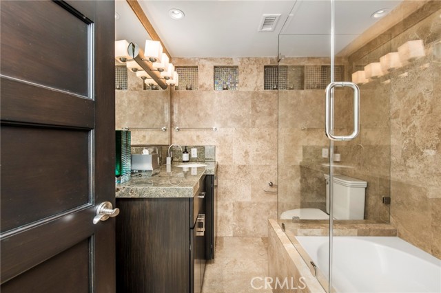 Bathroom Information | Bathtub, Shower, Shower in Tub, Granite Counters, Main Floor Full Bath, Remodeled, Upgraded, Walk-in shower |