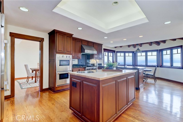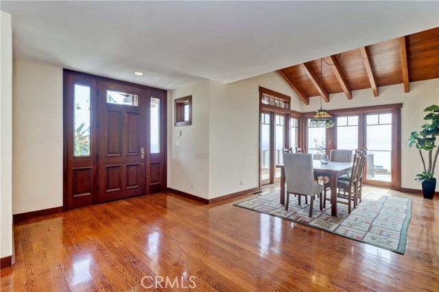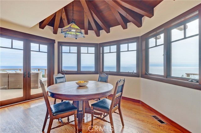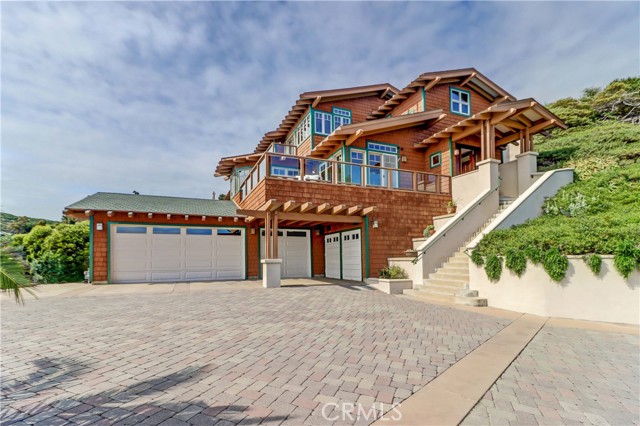 Welcome to your very own Montage de la Sur Estate! Perched above the picturesque South Laguna community, this exquisite 3454SF 3BD/3BA home offers a harmonious blend of luxurious living and Breathtaking Ocean Vistas. Reminiscent of the timeless elegance found at the renowned Laguna Montage Resort, this custom-built residence showcases California Craftsman style architecture, beautifully integrating nature-inspired elements with contemporary sophistication. As you step through the grand entrance, you are greeted by inviting indoor/outdoor dining rooms adorned with rich hardwood floors and intricate details, setting the stage for the remarkable craftsmanship throughout. Sunlight streams through large windows, illuminating the open-concept living spaces, creating an airy and welcoming ambiance. The spacious living room serves as the perfect gathering place, featuring soaring ceilings, an inviting fireplace, and oversized glass doors that seamlessly merge indoor and outdoor living. Imagine sipping your morning coffee while watching the waves roll in from the comfort of your own living room or hosting unforgettable soirées with friends and family against the backdrop of a breathtaking sunset. The chef-inspired kitchen is a culinary masterpiece, boasting top-of-the-line appliances, custom cabinetry, and a large center butcher block island. Don't forget the separate pantry room and convenient dumbwaiter. One flight up you will never want to leave your light filled Expansive Master Bedroom Suite and Executive Office area. One of the two bedrooms at the lower level could be converted to an ADU. The Huge 12,000 SF lot allows for Off Street Parking for approximately 10 Cars including three spaces in the over-sized attached garage. Perched above the the best beaches in Southern California you will enjoy easy access to West Street Beach, Ninth Street Beach, Aliso Beach and the trails and Beaches at The Montage Resort.