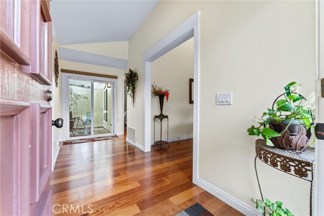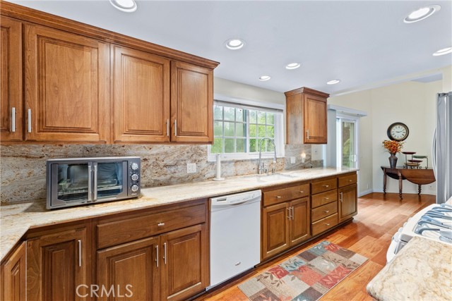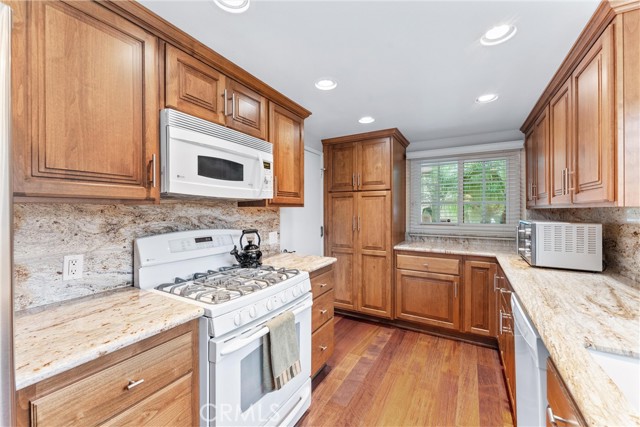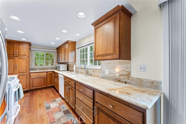 Rarely on the market in the tree lined streets of Sunset Place, this single level home sits on one of the largest lots in the neighborhood. This lovingly maintained single family home has been charmingly upgraded. The fully appointed kitchen features newer cabinets, granite countertops, under cabinet lighting, stainless steel appliances, and a reverse osmosis water system. Engineered wood floors throughout. The living room includes a wood burning fireplace for a cozy feel. The primary bath has been remodeled to include a double vanity and custom lighting. For the ultimate in luxury, both bathrooms have toilets converted to Kohler bidet seats. Air Conditioned throughout, the home also features a Bosh whole house fan for maximum energy efficiency. The large wonderfully maintained yard with charming gazebo and hardscape is perfect for entertaining or relaxing. The garage floor has lifetime guaranteed epoxy coating and a Chamberlain Whisper garage door opener with 24 emergency backup and keyless entry. The community pool and spa is located just steps away. This great location is close to schools, shopping, and transportation while offering both the privacy and serenity you are looking for.