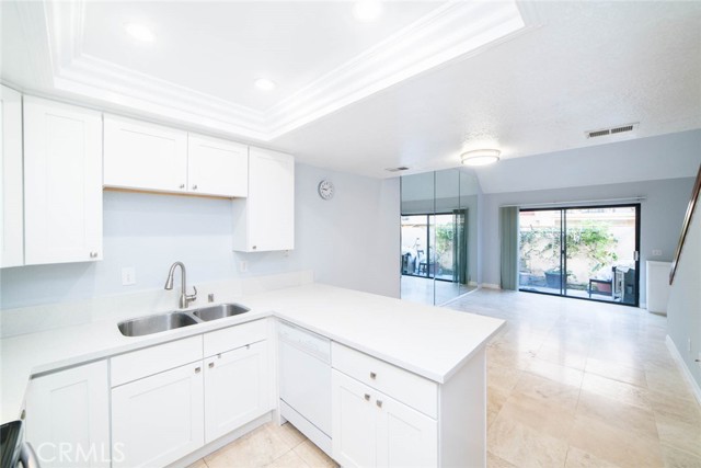 This hard to find 3 bedroom home is nestled in the quite Crystal Cay community. One master bedroom downstairs and one master suite upstairs provides perfect living for privacy and convenience. The upstairs den can be easily converted to the 3rd bedroom, or used as office, with overlooking window and cozy fireplace. Soaring vaulted ceilings make the living area light and bright. Fully upgraded kitchen with stylish cabinets, quartz countertop and stainless steel appliances for joy of cooking and easy maintenance. Wood and tile flooring throughout. Enjoy two community pools and spa as well as nearby shopping and dining. Just a short drive to Dana Point Harbor. Attend highly rated Dana Hills High School.
