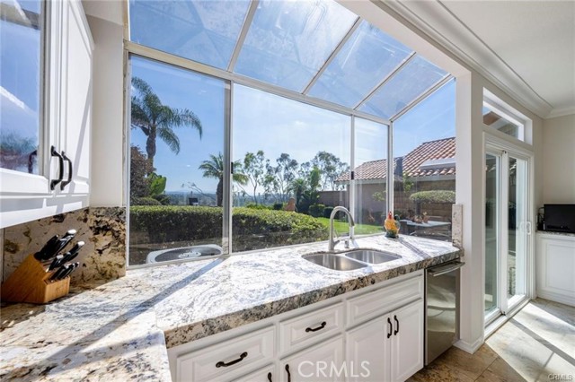 PANORAMIC VIEWS including partial ocean view and views of the Saddleback Mountains. Gated and private courtyard greet you at the entrance of this beautiful, 3 bedroom, 2.5 bathroom Niguel Summit home. Travertine flooring on the lower level, large upgraded kitchen with granite counters, newer kitchen appliances. Vaulted ceilings create bright and open living area. Wrought iron staircase leads to second floor. Enjoy the amazing views from the master bedroom. Two additional bedrooms and bath located upstairs. Backyard paradise with jaw-dropping views. Beautifully landscaped with grassy area, pavers and viewing area. 2 car garage with epoxy flooring. Other special features include whole house water filtration system, solar panels, newer dual pane windows and newer AC system. This home is ocean close, near shopping, restaurants, hiking trails and Dana Point Harbor.