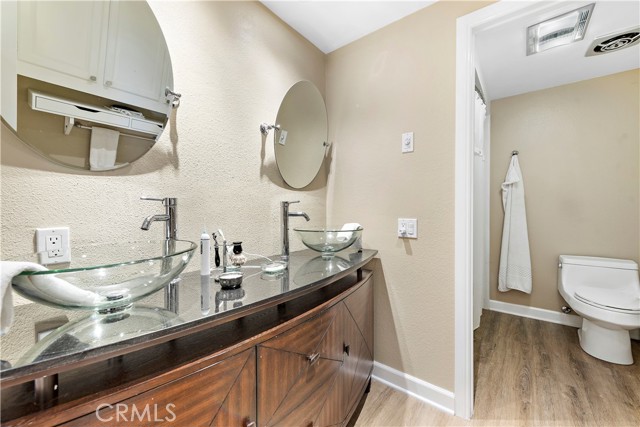 SHORT-TERM FURNISHED RENTAL IN 55+ COMMUNITY OF LAGUNA WOODS. Why commit to buying when you can lease this beautifully updated and remodeled residence in Laguna Woods, which is reserved for homebuyers 55 and better? Conveniently located inside Gate 5, the 2-story design is bright and open with large, tinted windows, airy volume ceilings, a versatile loft, wood-inspired flooring, 2 bedrooms, 2 freshly upgraded baths with vessel sinks, and more. Spanning approx. 1,324 s.f., the stylish residence boasts a custom-caliber kitchen with dark stained wood cabinetry, granite countertops, contemporary tile backsplash, recessed lighting and stainless steel appliances. New split system air-conditioning and newly upgraded bathroom showers. A high-end washer and dryer package adds convenience, and a large and private patio is ideal for enjoying the outdoors. Guard-gated Laguna Woods is home to 27 holes of golf, 7 clubhouses, 5 swimming pools, 2 fitness centers, and more than 250 clubs–all set among park-like grounds with an abundance of open space and mature landscaping.