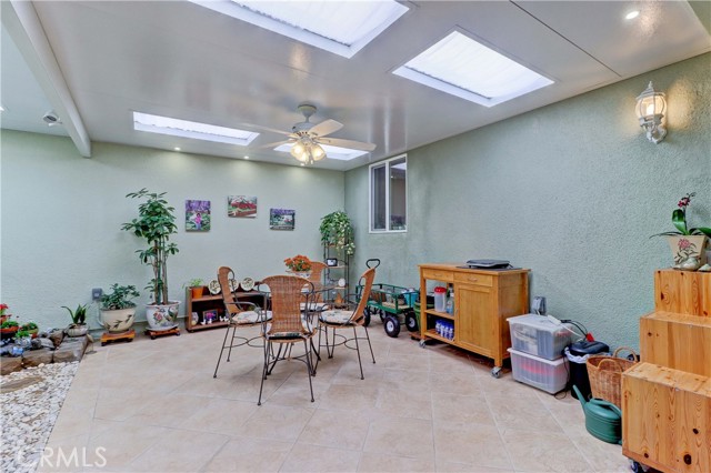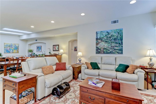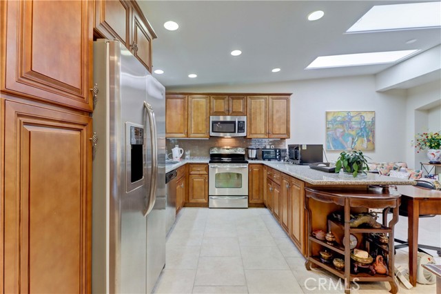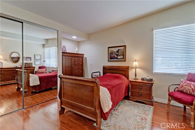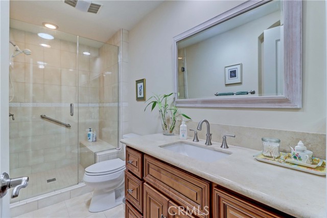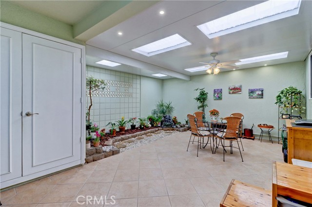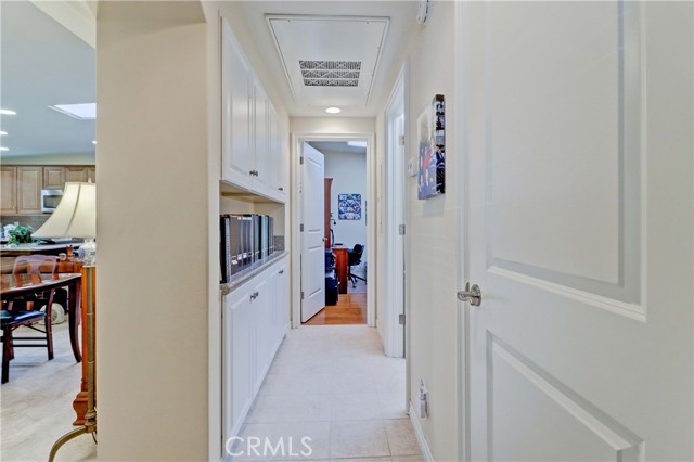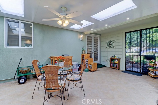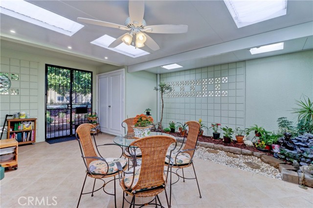 SINGLE STORY " Madrid " floor plan with NO ONE ABOVE and BELOW. NO STAIRS to the nearby carport. Gorgeous remodeled home includes rare RAISED CEILING, central heat and air, double pane glass windows and recess lighting. Expanded open kitchen and enclosed atrium with 2 big skylights make the whole living space big and roomy. Hallway has a Washer/Dryer closet and a half bathroom with skylight. Guest bedroom has laminate floor, 2 skylights and mirrored door closet. Master bedroom has laminate floor, raised ceiling, and mirrored door closet. Master bath has tiled floor, solar tube and a big shower room with seat inside. In addition to these features, it has a huge enclosed private front patio with a double door gate entry, tiled floor and extra storage. This charming and inviting home welcomes you to join the Southern California premier guard gated community with incredible amenities. Carport is nearby and the number is 180 - 05.