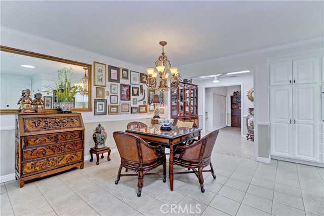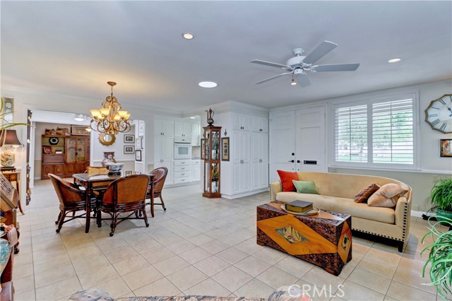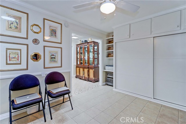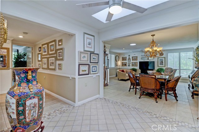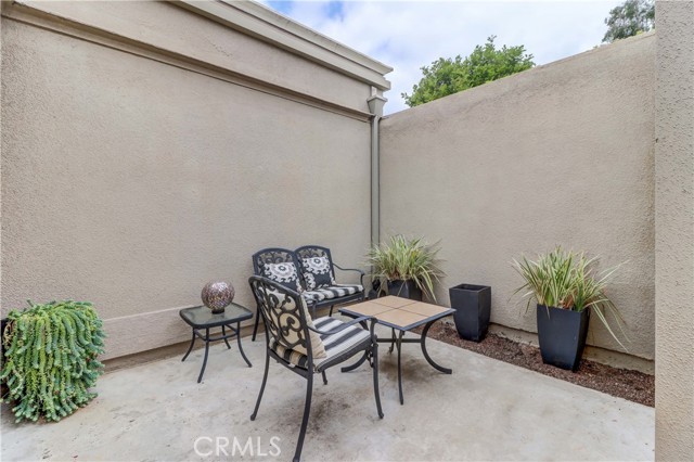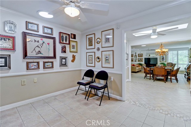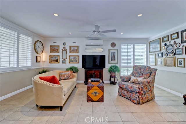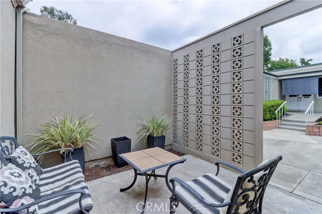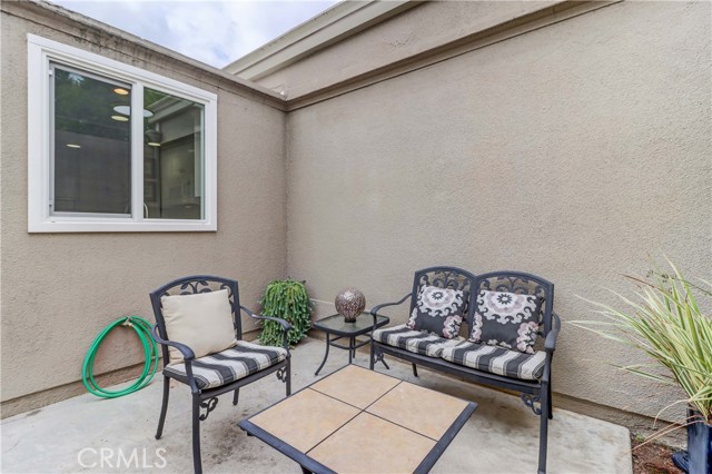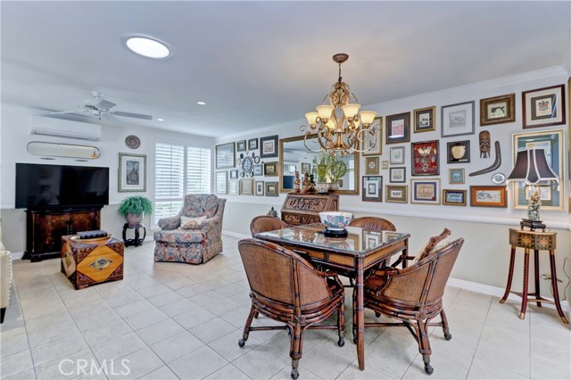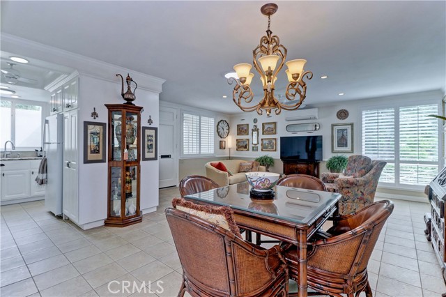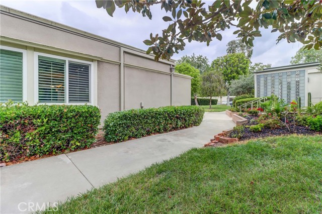 Beautiful Barcelona cottage (2bd/1ba) – great courtyard location, end unit and remodeled. As you enter the home, you will notice that the atrium has been enclosed and there are two skylights making the room brighter. This enclosure provides additional square footage (approximately 60 sq. ft.) and can be used as an extension of your living room, dining room or an office. The second bedroom has been modified and now serves as a den. Your new home has many great features including new windows, ductless ac/heating system, smooth ceilings, tile flooring throughout, crown moulding, ceiling fans, and recessed lighting. The kitchen was remodeled in 2010 with granite countertops, new cabinets with pullout drawers and a new pantry. The kitchen window overlooks a spacious front patio. The bathroom was also remodeled to add double sinks, new vanity mirrors, a walk-in shower with a bench seat, and inside laundry. A full-size Bosch washer and dryer are an added bonus. This end unit home has an extra window in the living room, enhancing the light & bright cheerfulness throughout. The home is well maintained, move-in ready and located in Laguna Woods Village – the premier 55+ active community in Orange County. The Village is near Laguna Beach and offers many great amenities such as: 27-hole golf course, tennis courts, separate pickle ball courts, five swimming pools, three fitness centers, seven clubhouses including Clubhouse 4 offering amazing classes in art, ceramics, wood shop, jewelry-making, and sewing, and more than 250 clubs. The HOA includes water, sewer, trash, cable TV and landscaping. Come and see your beautiful home – one of the most popular floorplans in the Village.