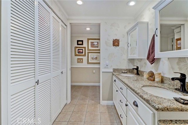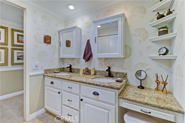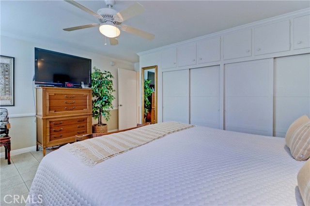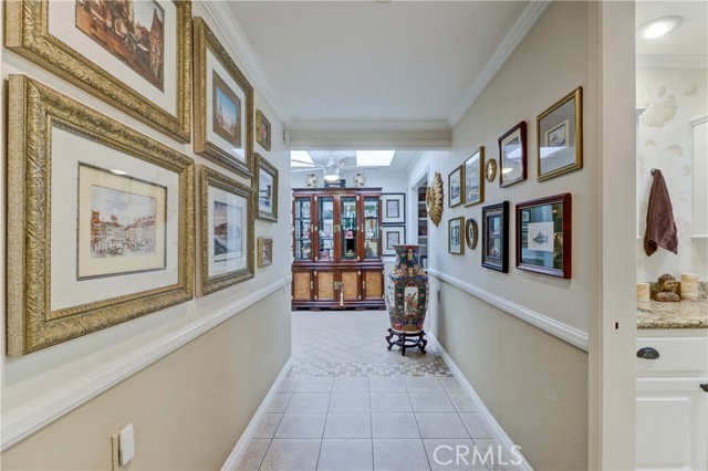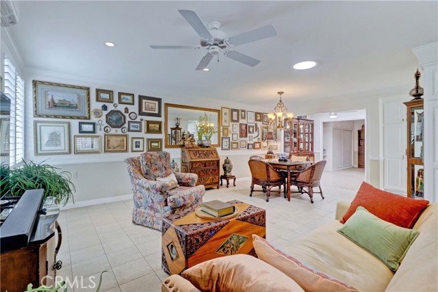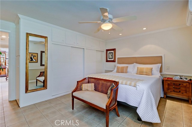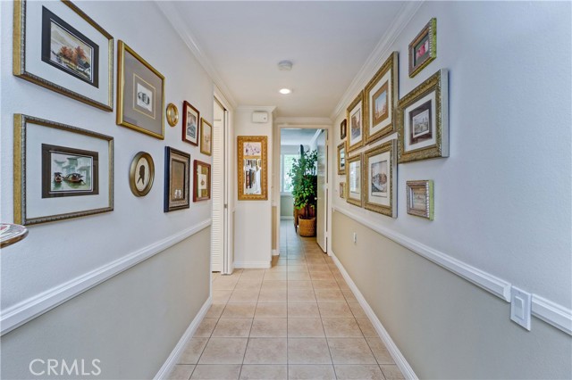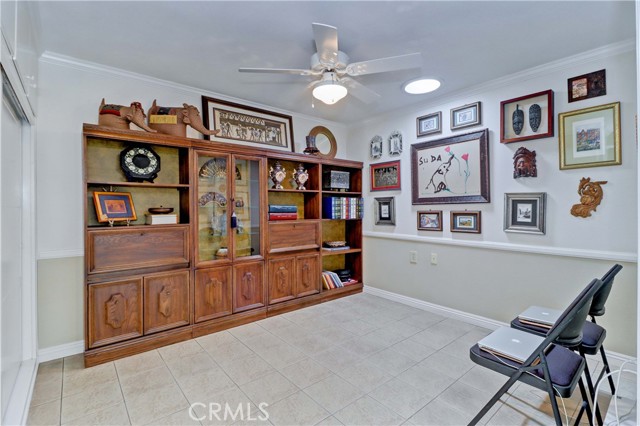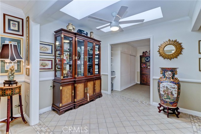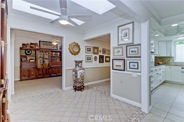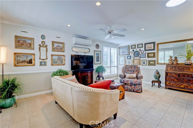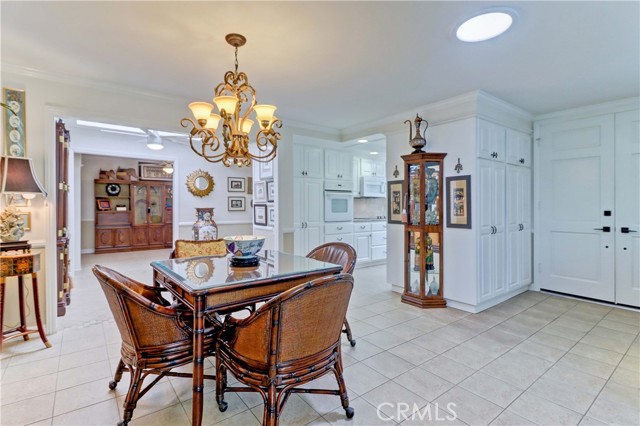 Beautiful Barcelona cottage (2bd/1ba) – great courtyard location, end unit and remodeled. As you enter the home, you will notice that the atrium has been enclosed and there are two skylights making the room brighter. This enclosure provides additional square footage (approximately 60 sq. ft.) and can be used as an extension of your living room, dining room or an office. The second bedroom has been modified and now serves as a den. Your new home has many great features including new windows, ductless ac/heating system, smooth ceilings, tile flooring throughout, crown moulding, ceiling fans, and recessed lighting. The kitchen was remodeled in 2010 with granite countertops, new cabinets with pullout drawers and a new pantry. The kitchen window overlooks a spacious front patio. The bathroom was also remodeled to add double sinks, new vanity mirrors, a walk-in shower with a bench seat, and inside laundry. A full-size Bosch washer and dryer are an added bonus. This end unit home has an extra window in the living room, enhancing the light & bright cheerfulness throughout. The home is well maintained, move-in ready and located in Laguna Woods Village – the premier 55+ active community in Orange County. The Village is near Laguna Beach and offers many great amenities such as: 27-hole golf course, tennis courts, separate pickle ball courts, five swimming pools, three fitness centers, seven clubhouses including Clubhouse 4 offering amazing classes in art, ceramics, wood shop, jewelry-making, and sewing, and more than 250 clubs. The HOA includes water, sewer, trash, cable TV and landscaping. Come and see your beautiful home – one of the most popular floorplans in the Village.