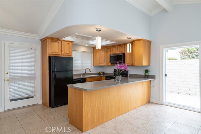 Highly desirable and wonderful location. A coveted single level cottage style end unit home has no one above or below, no step. This San Sebastian CONDO has 2 bedrooms /2 baths and a large patio. It is nestled in a private setting in the award winning senior community of Laguna Woods Village with incredible mountain views from the living room window and views from all bedrooms. Upon arrival, you are greeted with a gorgeous green landscape with an extra large front yard. You will delight in this open-concept kitchen that extends into the living room and dining room. This turnkey home has recently been freshly painted neutral color and is light and bright. Enjoy the remodeled kitchen with recessed lighting, newly installed dishwasher, microwave, refrigerator, and highlighted with attractive bar lights. This expansive floor plan features vaulted ceilings, double pane windows and sliding doors, scraped ceiling, crown molding and tile flooring throughout. Mirrored closet doors, Warm, inviting carpeting accentuates the bedrooms. And don’t miss the captivating skylights in each of the remodeled bathrooms, which provide an abundance of natural light. Perfect for outdoor entertaining and relaxation, you will adore the multi patio areas. One which is a fully enclosed patio, providing privacy with tile flooring and extra storage closet. The dining room provides a unique access to the courtyard patio through the back door. What’s more, you’ll appreciate the convenience of a stackable washer and dryer in the hallway closet. Not only that, the community offers many amenities including: 2 golf courses, 7 clubhouses, 5 swimming pools, spas, tennis courts, pickleball, lawn bowling, hundreds of social clubs, a performing arts theater, gym and more. In addition, the home is close to the beach, shopping centers, major freeways, public transportation, restaurants, doctors and hospitals.