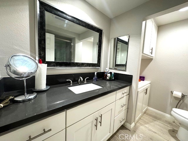 Absolutly beautiful ! Remodeles large 2 bedrooms and 2 full baths Castilla model in gate garded community of Laguna Woods close to gate 6. Enter through a custom door to the hallway with Laminated wood floors through the entire house. Formal living and dining over looks the view and large enclosed balcony. Remodeled kitchen with white self close drawers and cortz counter tops and plenty cabinets. Stainless steel appliances and white subway tiles. Beautiful built-in buffet offers more storage and beauty to this magnificent place. 2 large bedrooms with new door and windows and 2 full remodeled bathrooms with white vanities and cortz tops and beautiful showers and tub with enclosures. 2 air unites in master bedroom and living space. New tankless water heater. Comes with one covered space near by. Washer abd dryer in the unit.