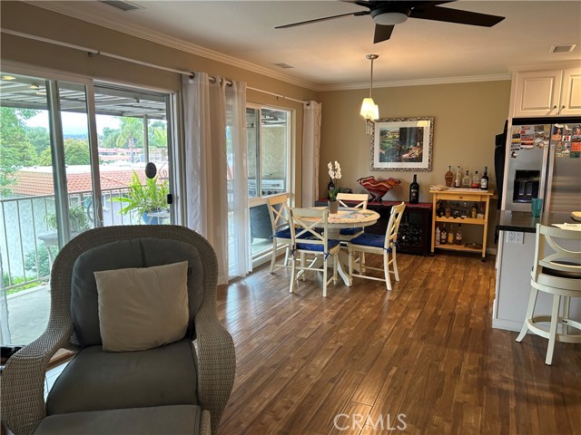 This beautifully remodeled 2 bedroom/2 bath Castilla model is a perfect choice for enjoying the Laguna Woods community. The spacious living room with fireplace and dining area provide ample room for entertaining guests. Take in the breathtaking views of the hills of Saddleback Mountains and the stunning sunsets from either inside the unit or on the large wrap-around enclosed patio. The unit boasts plenty of windows, allowing for an abundance of natural light. The kitchen is equipped with granite counters, white cabinets, soft-closing drawers, recessed lighting, stainless-steel appliances as well as full size stackable washing machine and dryer. The master suite features a walk-in shower with a tile enclosure and a seamless glass door, and a vanity area with Quartz countertops. The guest bathroom offers a convenient walk-in tub/shower, a Quartz countertop, and a fog-free mirror. The ceilings have been scraped and smoothed, the air conditioning units in the bedroom and dining area were replaced in 2018, ensuring your comfort during warmer days. This property is part of a vibrant 55+ community that offers a wide range of amenities. With 7 clubhouses, 5 swimming pools, a championship 27-hole golf course, a 9-hole executive course, an equestrian center, 3 fitness centers, a Performing Arts Theater, a library, a computer lab, and over 250 clubs and organizations, there is always something to do. Additionally, this community is just a short 10-minute drive away from the beautiful Laguna Beach, adding to the appeal of the location.