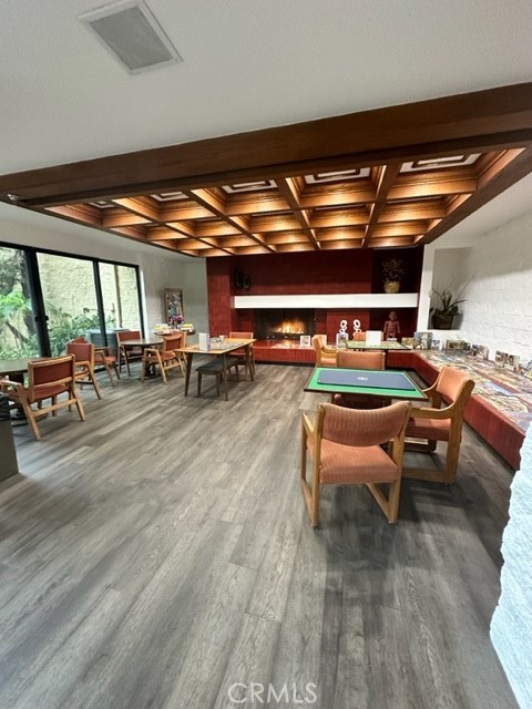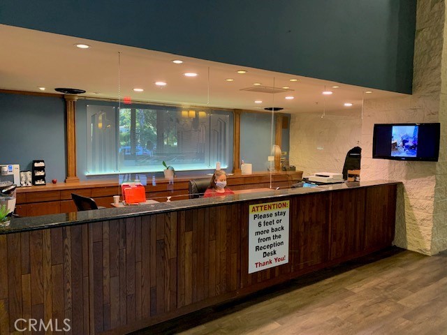 Enjoy resort style senior living at its finest. This highly sought after plan B floorplan features an updated kitchenette with Shaker Style cabinets, quartz countertop, electric cooktop and stainless refrigerator, all recently upgraded. Enjoy the amazing view of the hills and city lights from the living and bedroom. New easy care vinyl wood look flooring throughout. Bathroom features a designer vanity and step in shower. This senior community includes a nightly four course dinner, biweekly house cleaning, electricity, water, trash, and basic cable. On site activities include live entertainment, bingo, movies, exercise classes, card room, parties and more. Community is gated and features 24 hour front desk and maintenance. Laguna Woods offers access to a bus system, over 200 clubs, 2 fitness centers, theater, garden center, bocce ball and pickle ball. Seller will pay $3,000 GRF fee and HOA transfer fee.