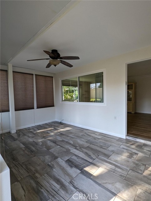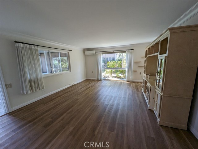 Lovely downstairs CADIZ with ENCLOSED PATIO and MINI SPLIT AIR CONDITIONING. This bright, spacious end unit is in a quite location with easy access through GATE 1. Other upgrades include dual panel windows, smooth ceilings with crown moldings, and large capacity stacked WASHER & DRYER. The enclosed patio has lots of windows and a ceiling fan. The kitchen has been remodeled with beautiful cabinetry, pull out drawers, stone backsplash, dishwasher and large walk-in pantry. The dining area has a table with seating for 6 comfortably. The bedroom has a large window, wall air conditioner, and closet organizers. The spacious remodeled bathroom has large shower with seat and a linen cabinet. Laguna Woods is a prestigious 55+ community in Orange County. Carport: 230 space #3.