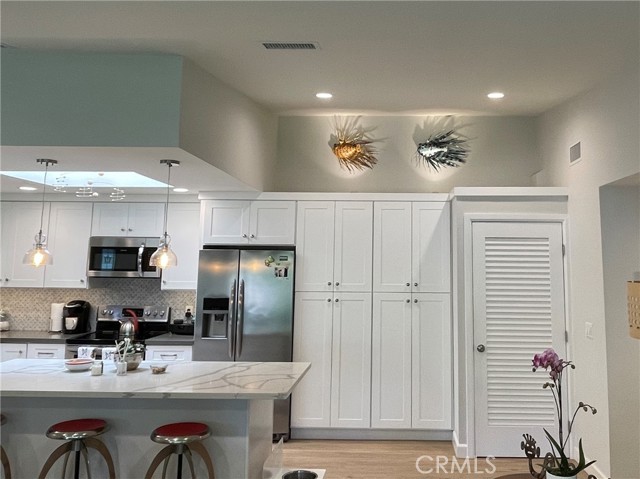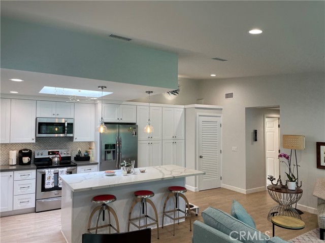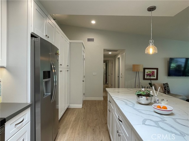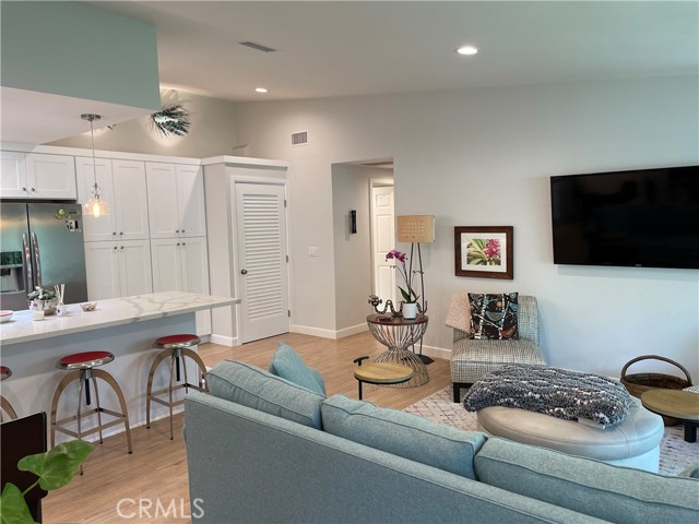 SHORT TERM RENTAL AVAILABLE 01/01/24 thru 04/15/24. GORGEOUS upper level Casa Blanca floor plan short term rental in the 55+ Laguna Woods Village community. This fully upgraded 2 bd 2ba unit close to Clubhouse 1 has all the comforts of home, including central air, dual pane windows, and luxury vinyl plank flooring. You'll love cooking in the expansive open kitchen with high-end appliances, breakfast bar, and the convenience of laundry tucked away in its own closet. The living room has a large screen TV and sliding door access to a very quiet and serene patio. You'll be very comfortable in either of the generous sized bedrooms, both with highly upgraded bathrooms. The master bath has a walk-in shower. The 2nd bath has a shower/tub. This light and bright seasonal rental is perfect for your visit to the area! Available from June 20th thru Oct 30th 2023. Will consider a shorter negotiated term between those dates. Enjoy the country club style living in the Laguna Woods Village with its many amenities including 5 swimming pools, 7 clubhouses, 3 gyms, a championship 27-hole golf course and a 9-hole 3 par executive course. There are over 250 social clubs, craft studios, a performing arts theater, pickleball, tennis courts, equestrian trails, stables, golf cart paths, lawn bowling, bocce ball, pickleball, fare-free bus service, manned security gates, and much more. This location is conveniently located near beautiful Laguna Beach, shopping malls, medical services, hospitals, and the 5 freeway.