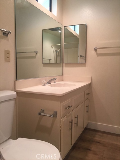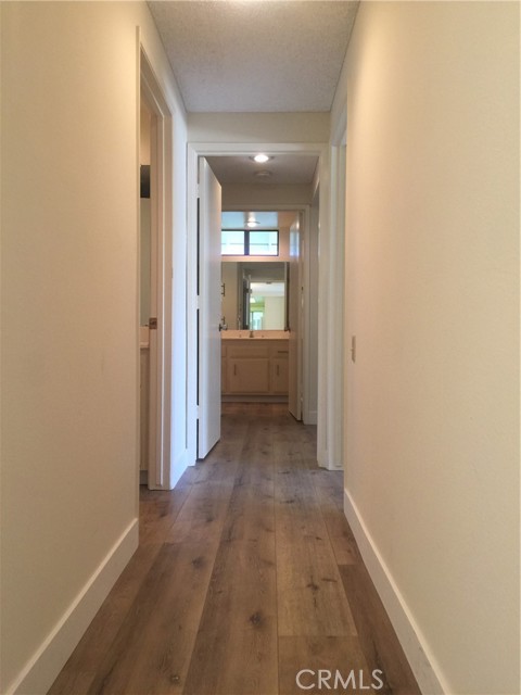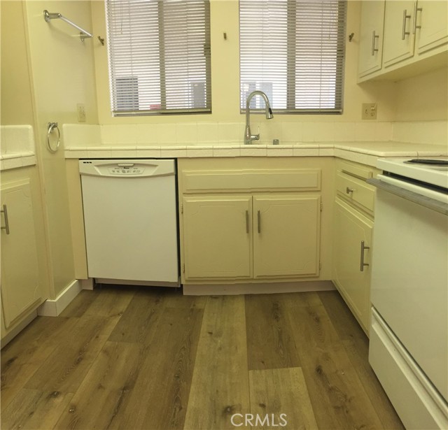 55+ community. This is a lovely 2 bed, 2 bath condo located in Laguna Woods Village. This is a single level street-level unit with no one above it. No stairs to climb to enter your home. Lovely new plank flooring and new paint throughout. Lots of closets and storage in this home. Enter this lovely home to a large living area with huge patio slider that opens to your private patio allowing lots of natural light. The kitchen comes complete with all appliances, including a refrigerator, new garbage disposal, washer and dryer in the unit. The bedrooms each have their own access to the outdoor patio to escape and enjoy the nice mornings or evenings. There is a hall bathroom and a separate one for the master bedroom. Both are spacious and one bathroom has a shower; the other has a tub with a shower. This home is ideally located at the end of the cul-de-sac. The Laguna Woods Village includes 5 swimming pools, 2 fitness centers, 7 clubhouses, golf, tennis, bocce ball, equestrian center and much more. This is a 55+ community so come and enjoy the good life!