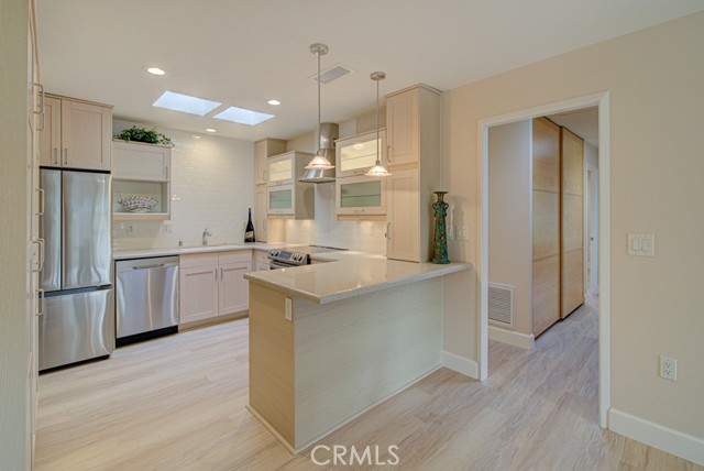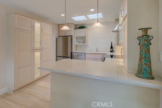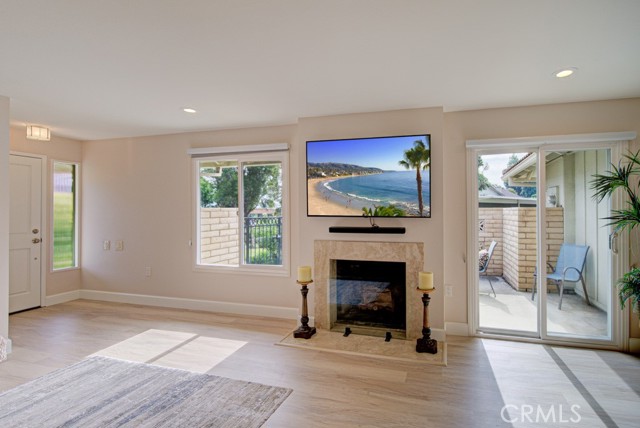 Escape to your newly remodeled Ventura model single-level home, perfectly situated on a quiet cul-de-sac. Step into a world of modern luxury, with new luxury flooring and baseboards throughout, fresh paint, new water heater and a kitchen adorned with brand new appliances. Indulge in the sleek and tasteful design of the kitchen and bathrooms, exuding a modern charm that is sure to impress. This thoughtfully designed home boasts a spacious floor plan, complete with a cozy fireplace and generous living and dining areas, providing a welcoming ambiance for both relaxation and entertainment. Stay comfortable year-round with central heating and air conditioning, ensuring the perfect temperature no matter the season. Additional features include custom-made built-ins with ample storage space in the hallway and bedroom closets, kitchen skylights, solatubes in hallway and bathrooms, plantation shutters, full-size inside laundry, dual pane windows, updated entry and interior doors, smooth ceilings, and recessed lighting, adding to the overall appeal. Step out onto your private patio oasis, where you can bask in the beauty of the sunrise with your morning cup of coffee or unwind in the serenity of the sunset. With no neighbors above or below and no stairs to navigate, this private property offers the ultimate retreat and offers the closest carport space. Access to unparalleled amenities awaits you in Laguna Woods Village, a top-tier senior community. Enjoy world-class facilities, including golf courses, clubhouses, pools, horseback riding, sport courts, and a convenient transportation system. Embrace a new beginning in your beautiful new home, where comfort, convenience, and a vibrant lifestyle seamlessly blend together.