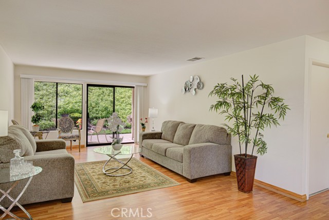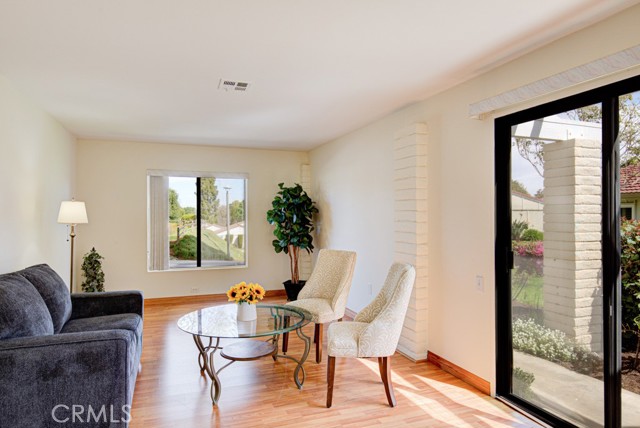 Here's your chance to own the rare El Doble model 2 bedroom/2 bathroom floor plan. Nestled on a quiet cul-de-sac with only one shared wall, this end unit feels like a single family home! You'll appreciate the open and flowing layout. The unique design offers two primary suites separated by the living area. The enclosed front room offers an additional living area, adding valuable square footage and versatility - it's ready and waiting for you to use it as a home office, TV room, large dining room, craft room, music studio or art studio...it's up to you! Large windows throughout the home flood the interior with natural light and views of the lush foliage and lawn that surround the home. A skylight in the kitchen also lets in natural light all day. The spacious patio off the living room offers a pleasant, private place to entertain or catch the cool coastal breezes. Central air and heat throughout keeps the temperature just as you like it. The smooth ceilings throughout are another indication of how this home has been nicely maintained. The kitchen features a range, microwave, dishwasher and loads of cabinets. Roll-out drawers in the pantry make everything easy to reach. The washer and dryer are conveniently located at the end of the kitchen. There's an extra-long and extra-wide garage with shelves and an automatic garage door opener. The home is in nearly original condition and priced accordingly, so you can feel free to make the changes you appreciate most and make this home your own. Ownership gives you access to Laguna Woods' vast array of private amenities. HOA includes water, trash disposal and over 100 free TV channels. PLUS...Enjoy 27 hole full-length golf course, 9-hole par 3 golf course, 7 clubhouses, 5 swimming pools, 2 fitness centers, over 250 clubs & so much more. Free bus service within the Village and to the nearby shopping & medical centers. Only 5-7 miles to Laguna Beach and a short distance to 5 & 405 Fwy. HURRY...THIS ONE WILL NOT LAST!
