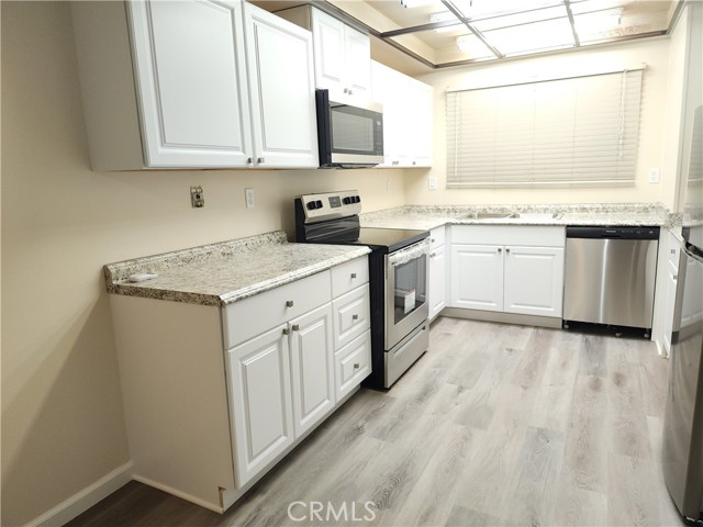 Great plan that has no steps or stairs to the front door from your carport. This home has no one above and is all on one level. The kitchen and bathrooms have just been totally remodeled. The kitchen has white cabinets and stainless appliances. The bathrooms have custom tile showers, modern vanities and more! The flooring is wood look, carpet and tile in the bathrooms. There is even a washer and dryer inside the unit. The home is located on a cul-de-sac away from busy roads or loud freeways. The PRIME LOCATION close to multiple gates gives you easy access to Clubhouses 5 and 6 with pools, a gym and more. It is also close to shopping, restaurants, medical offices, Saddleback Hospital, the post office, the freeway and more. Laguna Woods is one of the most prestigious 55+ communities in Orange County. In Laguna Woods you have access to: bus system around the community & to area shopping, restaurants, medical facilities; 5 pools & 4 hot tubs; golf, tennis, library, 7 clubhouses, 200+ clubs, 2 fitness centers, theater, horse back riding/stables, garden centers, basketball, card rooms, billiards, bocce ball, art studios, Emeritus classes & more!