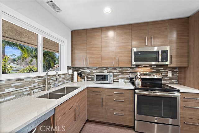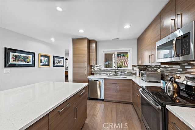 Laguna Woods is known for its world-class amenities and breathtaking views, but this one of a kind corner home is something special. With no stairs to climb and a detached single garage, you’ll love living in this spacious two bedroom two bath single level home. The recent remodel brought with it hardwood floors, custom cabinets with soft close drawers and pullouts, as well as upgraded quartz countertops, and recessed LED lighting throughout. You won’t want to miss out on the bathrooms either – showers with porcelain tile featuring accent tile borders, custom glass shower door, and state of the art shower heads make them truly unique! To top it all off, an enclosed sunroom with both heat and air conditioning will provide the perfect space to take in those Hawaiian-like sunsets over the beautiful mountain views. And don’t forget about your generous storage options – an attic, detached garage space, and additional custom cabinet storage in the island seating area of the kitchen. Fireplace surrounded by custom tile adds charm while a large family room open to a spacious dining area completes this amazing property! Laguna Woods amenities surpass all expectations, 27 hole championship golf course,9 hole executive par 3 courses, tennis, paddle tennis, lawn bowling, 2 fitness centers, 7 clubhouses, 5 swimming pools, equestrian center, gardening opportunities, art studio, world-class wood shop, over 200 clubs and organizations ensure you will never get bored here! Plus free bus transportation around the community and nearby shopping and bus trips. Also there is a very economical RV storage area to park your RV, Country club living at it's BEST and just approximately 6 miles from beautiful Laguna Beach! Come see it soon, as this corner lot is bound to move quickly!