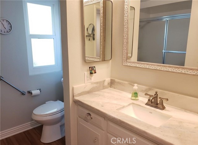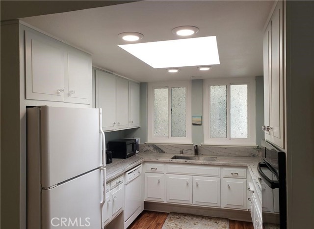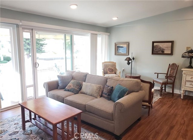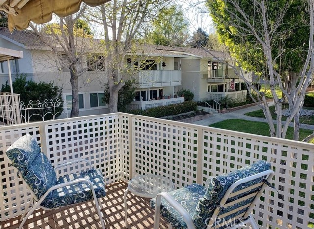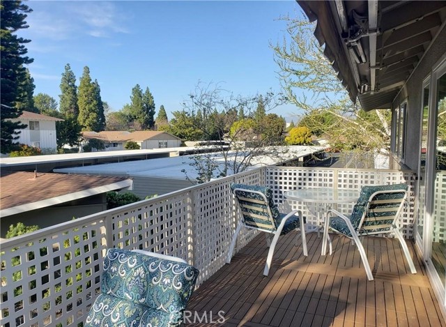 SHORT TERM FURNISHED LEASE Available May 1 thru October 31, 2023. This is a 2 bedroom/2 bathroom UPSTAIRS home in a peaceful location away from busy streets and the freeway. You will not be disappointed with this beautiful home. SMOOTH cathedral ceilings with recessed lights. INSIDE LAUNDRY. WOOD LOOK Flooring plus newer carpet in the bedrooms. The kitchen has been remodeled with QUARTZITE counter tops, upgraded appliances, dishwasher and a sky light. Both bathrooms also have quartzite counter tops. The hall bath has a stall shower and the primary bathroom has a shower/tub combo. Both bedrooms have queen beds and black out shades and the primary bedroom has a wall A/C. The deck overlooks an open green area and features a retractable awning and custom flooring. This Casa Blanca model has a dining room with ceiling fan. All the windows and the slider are double paned vinyl Milgard windows. This wonderful home is in a convenient location, close to Clubhouse 1. This gives you easy access to a variety of amenities at Clubhouse 1 with its pool, gym, drop in lounge & bocce ball. It is also close to shopping, restaurants, medical offices, Saddleback Hospital, the post office, the freeway and more. Laguna Woods is one of the most prestigious 55+ communities in Orange County. In Laguna Woods you currently have access to: bus system around the community & to area shopping, restaurants, medical facilities; 5 pools & 4 hot tubs; golf, tennis, library, 7 clubhouses, 200+ clubs, 2 fitness centers, theater, horse back riding/stables, garden centers, basketball, card rooms, billiards, bocce ball, art studios, Emeritus classes & more!