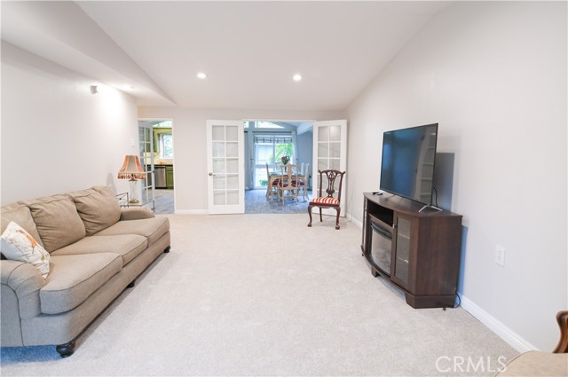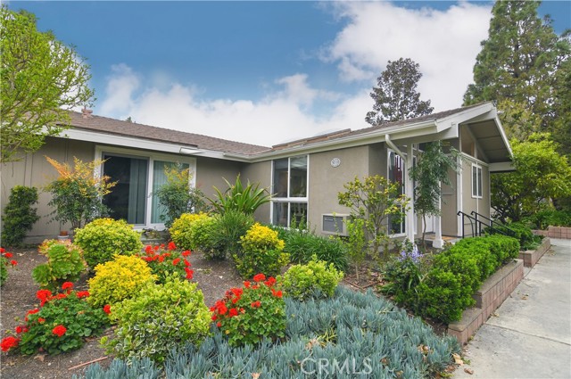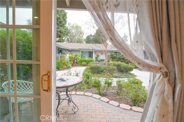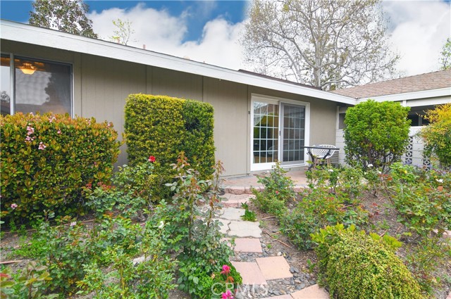 CHARMING SINGLE STORY COTTAGE - Ground Floor - NO ONE ABOVE or BELOW, No steps, End Unit - Move-in Ready. fragrant English Flower Rose garden entrance views in one of the most Peaceful Locations in Laguna Woods (55+ community). Welcome to an upgraded La Corona model (bathrooms remodeled to two separate bathrooms), renovated, enlarged with over $150,000 in professional design & construction, including stackable washer/dryer & air conditioners, and additional Closet space. Enter through the main stained-glass front door with its newly installed lock, or the opposite side, through your sliding French doors with garden views, both leading into a warm and inviting cottage-style home. The additional formal dining room flows seamlessly into the open French-style kitchen, featuring exquisite granite countertops, stainless steel appliances, beautiful wall tiles. New designer wood-look tile flooring, living room/bedroom carpeting, and new paint. Flooded with natural light from the skylights & vinyl windows, upgraded lighting, & French doors separating the living & dining room. Enjoy your peaceful retreat in the master bedroom, with high ceilings and connecting French door, professionally reconstructed Master bathroom with new designer tiles, a luxurious new bathtub/shower combo, skylight and counter top vanity. Surrounded by citrus, maple and pine trees, creating a serene and tranquil environment, the patio and rose garden are perfect for enjoying the California sunshine or sunset. Turn-key, ready to move in. Note: tenant pays electricity; rent includes water, trash, separate Gardener, HOA & its amenities. Between Gates 1 & 3, Orange County's premier 55+ gated community, currently with complimentary bus service to surrounding shopping areas, 7 clubhouses, 5 pools, gyms, computer ctr, garden ctr, art studio, horse stables, tennis courts, & only $15 to play 18 holes of golf on this 27-hole championship golf course. With an abundance of open space and mature landscaping (walking distance to both Clubhouse 3 and "The Creek"); you have over 250 social clubs to choose from. Residents of this community have access to 7 clubhouses, 5 swimming pools, 2 state-of-the-art fitness centers, and a 27-hole championship golf course. And, only 7 miles away, you can enjoy the fabulous Laguna Beach, California. Don't miss the opportunity to rent this unit, available unfurnished (or possibly partially furnished), and enjoy the luxurious lifestyle available.