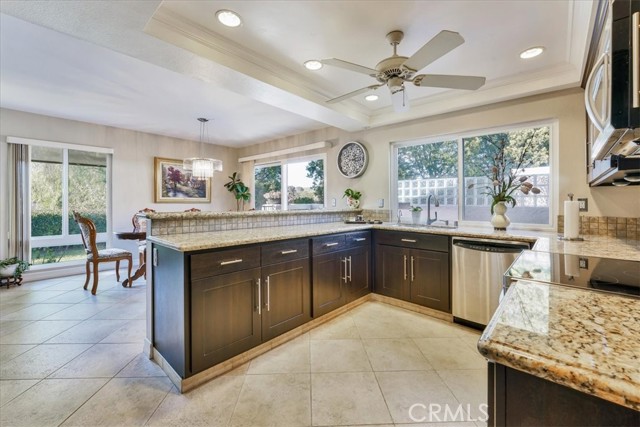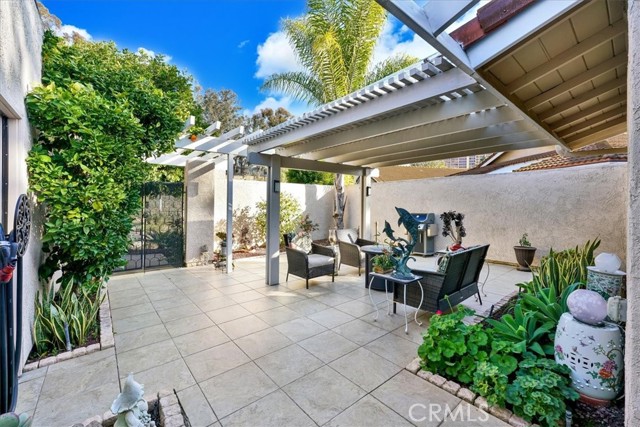 Stunning single story detached home in the highly sought after Gate 11 area of Laguna Woods. Located on a cul-de-sac with no homes across, this home is an expanded Villa Terraza floor plan with 2 bedrooms, 2 bathrooms PLUS an added retreat/office/den/sitting area. As you enter the private, gated courtyard, you are greeted to a delightful and tranquil place to relax under the covered patio. Inside, the spacious living room features a fireplace with stone wall, vaulted ceilings, ceiling fan and a sliding door to one of the outdoor spaces. The remodeled kitchen features recessed lights, granite counters, custom backsplash, pantry with roll out drawers, second extra large pantry, ceiling fan, stainless appliances, reverse osmosis instant hot water and a generous amount of storage and counter space. The kitchen is open to the large dining room. The dining room sliding door leads to another gated and fenced outdoor living space. Enjoy the birds, trees, fresh breezes and hill views from the tiled patio with privacy blocks. The master suite has been expanded with a walk in closet and a retreat/sitting area/office/den. The master bathroom has a custom tiled shower, shower door and dual sinks. There is a large secondary bedroom with views of the beautiful front courtyard and a ceiling fan. The guest bathroom has a remodeled shower/tub with custom tile, shower doors with exposed rollers and a vanity with granite counters. The bedrooms are on opposite sides of the home for added privacy. The laundry room leads to the oversized 2 car garage with epoxy flooring, sink, storage and a garage door with windows. Other features include: Central Air and Heat, Dual Pane Vinyl Windows, Smooth Ceilings, an inside Laundry Room, front door with glass panels, a full sized driveway and fruit trees. Laguna Woods is one of the most prestigious 55+ communities in the USA. In Laguna Woods you have access to: bus system around the community & to area shopping, restaurants, medical facilities; 5 pools & 4 hot tubs; golf, tennis, library, 7 clubhouse, a multitude of clubs, 3 fitness centers, theater, horse back riding/stables, garden centers, basketball, card rooms, billiards, bocce ball & more!