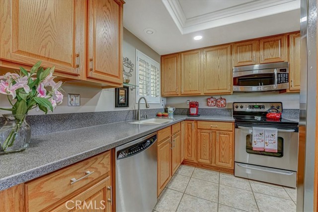 This Beautiful updated 2 BD/ 2 BA with VIEWS AND GREAT LOCATION!! Has it all! Walking distance to Club House 6. This lovely Easy Care Lifestyle "La Brisa" Model WITH LOTS TO OFFER is Waiting for you! Features large open space with neutral designer tile and SMOOTH CEILINGS, DOUBLE PAIN WINDOWS, and SHUTTERS thought. Remodeled KITCHEN with SOLAR TUBING, RECESSED LIGHTING, CORIAN COUNTERTOPS, S/S APPLIANCES with smooth top stove for easy care, as well as ROLL OUT PANTRY SHELVES and pots & pans roll out for your convivence. Not to mention, has inside FULL SIZE WASHER/DRYER, CENTRAL AIR & HEATING. Guest bedroom/den features a SKYLIGHT, and lots of closet space with custom organizer. Guest bath or second bath with a tub and shower with updated GRANITE VANITY. The spacious Master Bedroom, has a CEILING FAN, smooth ceiling with crown moldings, adjacent as you enter the Master Bath with dressing area with a spacious closet with custom organizer and WARDROBE MIRRORS, GRANITE TOP VANITY, and a large CUSTOM SHOWER with built in seating. This unit also features a large open Living room with dining room, smooth ceilings and has crown molding, also neutral designer tiles and Shutters that open up to the Balcony with STORAGE, Patio cover and a ROLL UP SHADE for extra privacy if you desire. ENJOY UNFORGETABLE VIEWS! While having your morning cup of coffee or tea, and/or that evening glass of wine. Assigned Carport 5016 Space 4 very close by and with enclosed storage. Not to mention, with comfortable walking distance to Club House 6, with a pool, "just bring your towel," what more could you ask for? Come envision your new beginnings in Laguna Woods, while it's still available! This 55+ Community of Laguna Woods Village features many great amenities Championship Golf on 2 courses, 5 swimming pools, (with this Unit one of the Pools is a short walk across the Street) tennis, pickleball, crafts & hobby workshop, 3 Fitness Centers, over 200 Social Clubs to join, billiard room, bridge Room, and more. Ideally located to freeways, restaurants, and the Beach. All this waiting for your enjoyment!