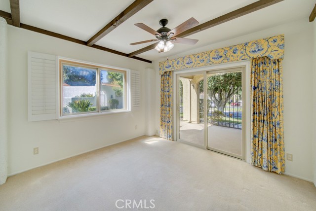Expanded end-unit single-level CASA ROSA manor in the Laguna Woods senior community. This home is situated on a pleasant cul-de-sac adjacent to one of the community’s golf courses. The walking path to the front door is graced with rose bushes. Enjoy the expansive greenbelt view from your large enclosed rear patio. This popular floorplan offers twin large master bedrooms on opposite sides of a spacious living room. The kitchen has ample storage and counter space. The expanded bonus room just off the dining area can serve as a family room, home office, exercise room or arts & crafts workshop. Additional features include ceiling fans, skylights and plantation shutters. There is a small covered front patio that is perfect for outdoor dining and entertaining. In addition to the one-car attached garage with washer/dryer and direct access to the residence, the driveway easily accommodates one additional vehicle. Do not miss this wonderful rental opportunity!