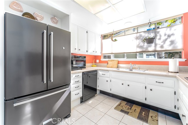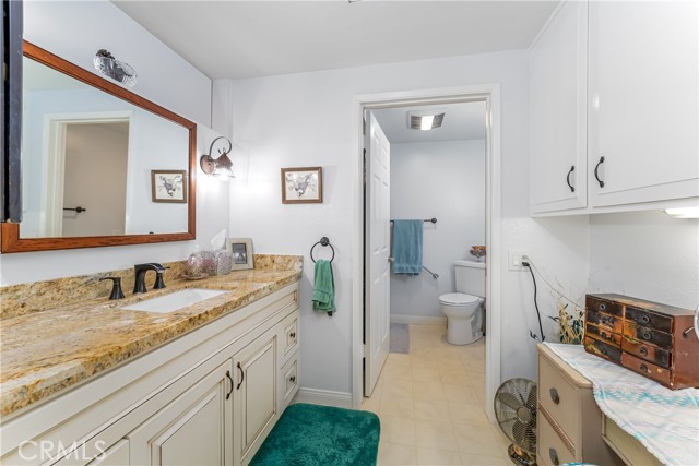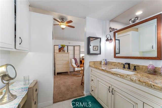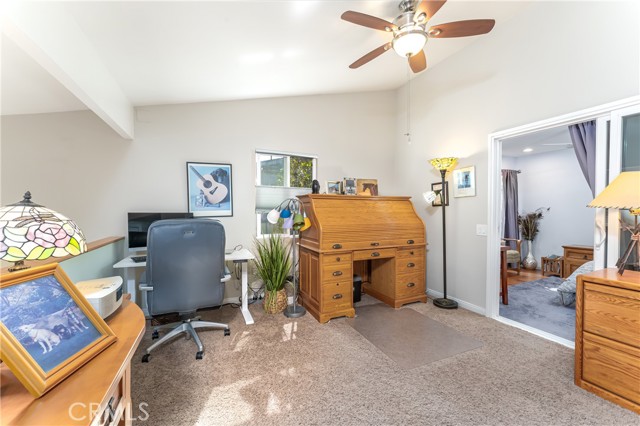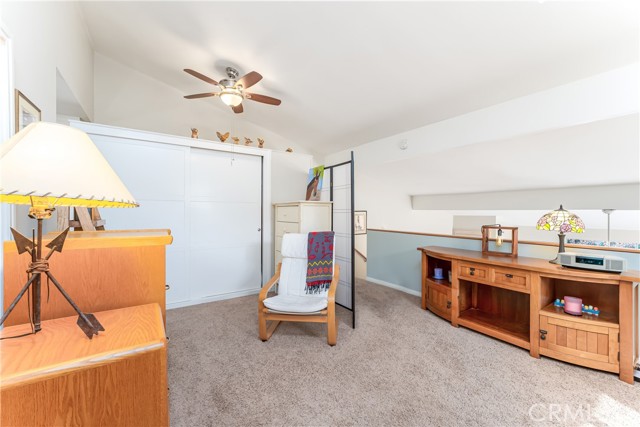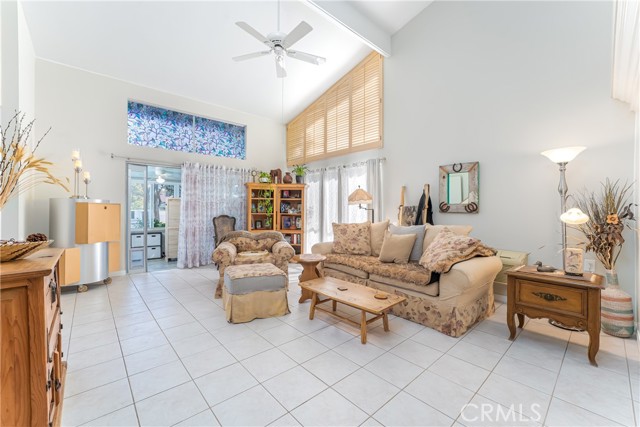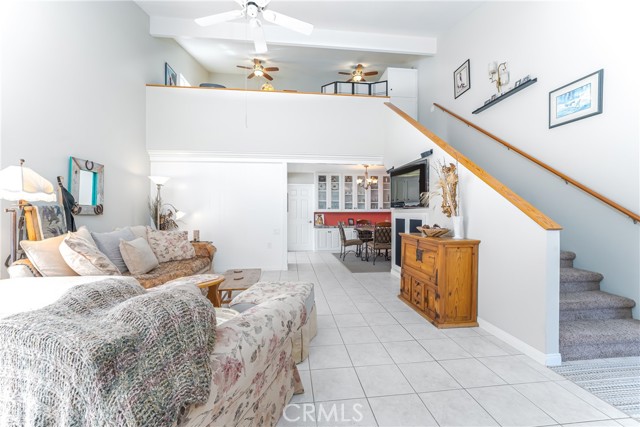 Exceptionally well located and upgraded converted Seville with soaring smooth vaulted ceilings and about 1,300 square feet of stylish living space plus an additional 123 square foot fully enclosed patio. One bedroom and bath on the ground level and one bedroom and bath upstairs with a large loft. Beautifully maintained and upgraded with smooth ceilings, neutral paint, tile flooring throughout the ground level living areas, upgraded vanities in both bathrooms, ceiling fans, air conditioning/heat pump on each level, attic access for storage, stainless steel French door refrigerator, Bosch dishwasher, built-in buffet and cabinets at dining room, added closet under the upgraded stairway. New smooth glass cooktop and oven are on order and the home will also be getting new shower and tub enclosures. Really close to parking & laundry room - Carport 59 space 8 is located on the end and has both upper and lower storage cabinets. Laguna Woods Village is Southern California's premier coastal age restricted community offering over 200 clubs, 7 clubhouses, 5 pools, 3 gyms, tennis, paddle tennis, Pickleball, library, free bus system, 27 holes of golf, equestrian facilities, riding trails, Aliso Creek walk path, woodworking shop, sewing, ceramics, lapidary, art classes, Apple and PC computer labs and so much more.