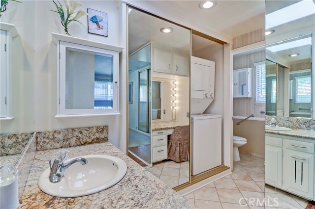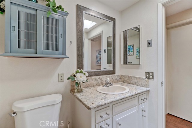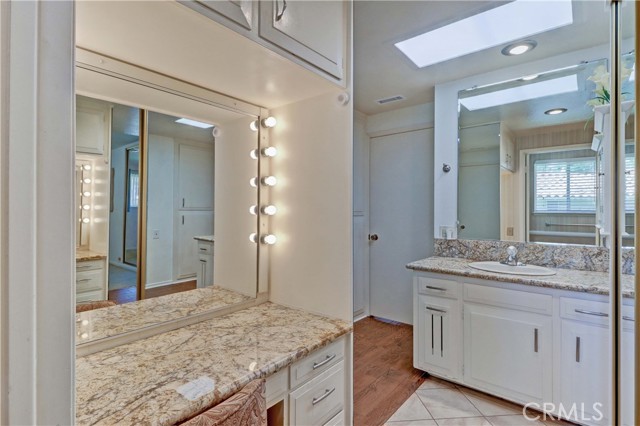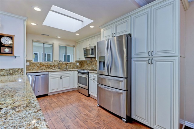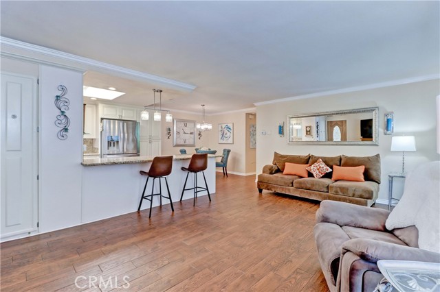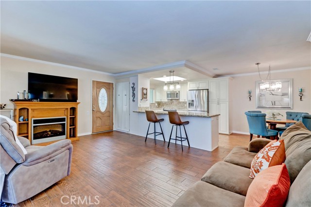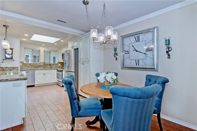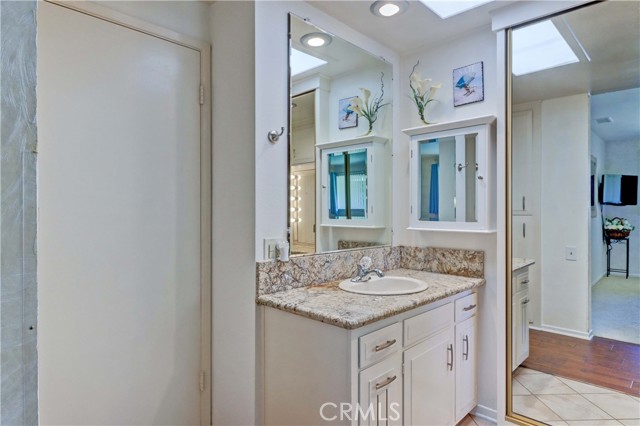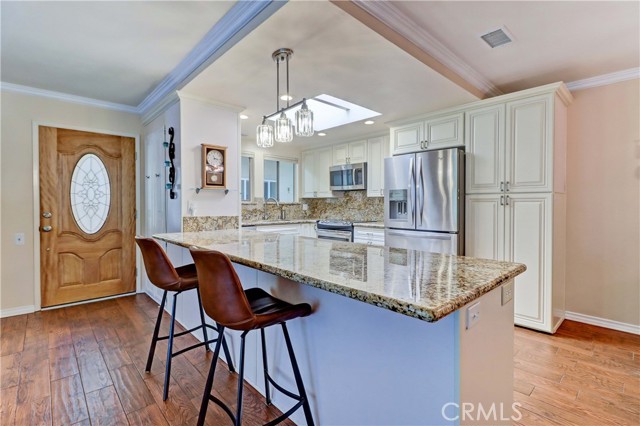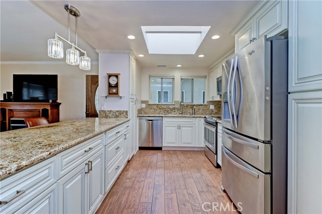 Priced-to-SELL !!!!! ALISO CREEK HIGH BANK LOCATION !!! This Casa Linda floor plan unit backs and just steps away to creek. ThIS single level unit has NO ONE ABOVE OR BELOW. Very easy access from the carport to unit just a few steps. It has 2 beds, 2 baths with a remodeled OPEN KITCHEN featuring stainless steel appliances, granite counter tops and gorgeous cabinets have self-closing drawers and lazy susan. A big SKYLIGHT and recessed lighting with custom fixtures over the large counter adding light and style. This unit also has SMOOTH CEILINGS with crown moldings, CENTRAL A/C, WASHER & DRYER, ENCLOSED FRONT PATIO and beautiful wood look porcelain tile flooring in living room and kitchen. The second bedroom has access to the open front patio through a sliding glass door. Guest bathroom has a SKYLIGHT and a bath tub. The master bath also has a SKYLIGHT, a stack LAUNDRY UNIT, a shower and a window bring in the light and fresh air from the Aliso Creek. Mature trees and nearby creek make this home attractive to who wants to take in the beauty of Laguna Woods Village. You will surely enjoy this lovely home sits up on a hill by the creek if you are looking for a serene, peaceful and resort style of living. Carport # 471 - 11.