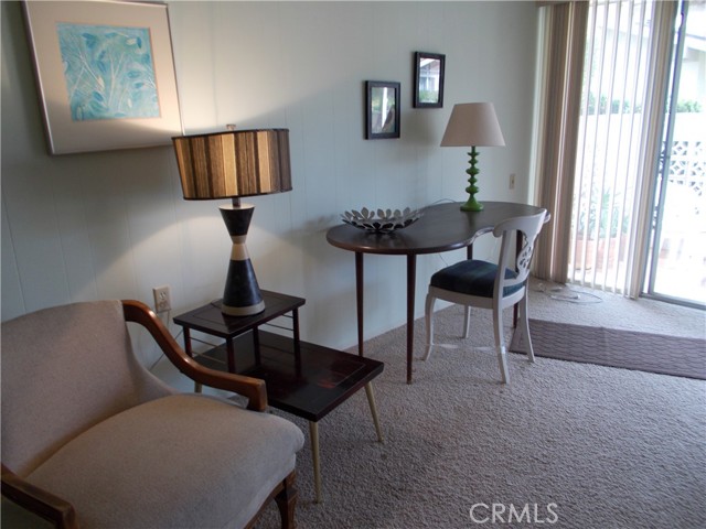 Charming Majorca Model, no steps, lower unit. Comfortable 2 bedroom, 1 3/4 bathrooms; Master bedroom has king bed; guest bedroom has a queen bed. laminate flooring has been installed in most of the living area. Light and bright unit, very nice original Majorca with some very stylish features. Newer formica counter tops in kitchen and bathrooms. No washer/dryer but very close to community laundry room. Heat pump in living room provides heat and A/C to living room and dining room areas. Radiant heat provides heat into bedrooms. Nice location within walkng distance to Performing Arts Center (Clubhouose 3). Parking available close to unit for easy access. This is a very clean unit. Laguna Woods Village offers substantial amenities, bus transportation, golf and a lovely restaurant at Club 19 for resident(s) and guest use only. Many clubs and organizations for enjoyable past time activities.