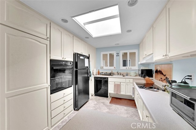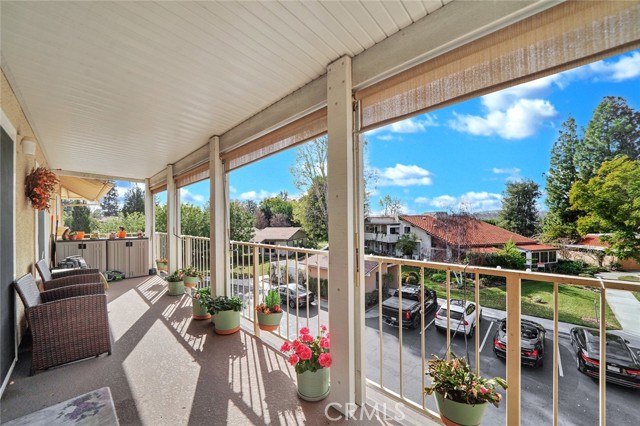 Welcome to your dream home! This delightful "Casa Contenta" 2-bedroom, 2-bathroom unit boasts modern upgrades and serene ambiance, perfect for comfortable living. Step inside to find dual-pain windows that invite natural light, creating a bright and airy atmosphere. The kitchen is a chef's delight, featuring a skylight, recessed lighting, newer appliances, and ample storage. Adjacent to the kitchen is a cozy dining area equipped with a ceiling fan and elegant shutters throughout the home. Say goodbye to stairs with the convenience of an outside elevator, ensuring easy access to your unit. The living room and the guest bedroom, have access to walk right on to the overside large balcony. The living room and both bedrooms are equipped with efficient Mitsubishi air units, providing year-round comfort. The master bathroom offers a stackable washer/dryer in the hall closet for added convenience, while ceiling fans in each bedroom ensures a comfortable night's sleep. Additionally, the guest bathroom features a skylight, adding a touch of luxury. Every picturesque views of the neighborhood, trees, and distant hills from both sliding doors one from the guest bedroom, and the other from your living room balcony. A short stroll will lead you to the scenic Aliso Creek walking path perfect for leisurely walks and nature lovers. Your carport is conveniently near by, complete with upper and lower storage cabinets. As a resident of this vibrant 55 + Community, you'll have access to a plethora of amenities including tennis courts, fitness centers, a bridge room, ceramics, photography, sewing, and over 200 social clubs to join. Embrace a filled with luxury, tranquility, and social opportunities. Don't miss the chance to make this charming home yours and experience a life of timeless beauty and modern convenience. W E L C O M E H O M E !