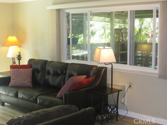 Magnificent Location with stunning views. This 55+ highly desirable Cadiz model corner end unit is situated next to Aliso Creek with incredible views of the creek, nature mature trees and greenbelts from every window! This gorgeous ground level 1 bedroom / 1 bathroom unit has no stairs and includes double pane windows, smooth ceilings, neutral woods like tile flooring and crown molding. The covered front porch and spacious living room with large windows overlook the picturesque outdoor greenery. You will enjoy the upgraded kitchen which is highlighted with newer countertops, sinks, appliances and cabinets. In addition, the bathroom has a newer countertop, sink and walk-in tub with shower handle. you will be delighted with the abundance of storage closets and shelves throughout the home. The laundry room and carport is conveniently located a few steps from your door. Moreover, there are plenty of parking spaces for your guests.