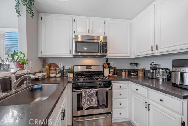 Beautiful corner unit condo. Perfect for a starter home/investment opportunity. Open concept floor plan with family room, kitchen and both bedrooms on the same level. Stainless steel appliances in the kitchen, dishwasher, range, refrigerator, and microwave. Quartz counters, with designer pulls and knobs provide tons of storage for your cookware. Decorator-perfect tile flooring throughout in the family room, dining room, hallway kitchen, bath and both bedrooms which are spacious. This is a two bedroom two bath end unit “Carriage Unit” with no one above or below you. The master bedroom features a huge walk in closet with closet organizes and an en suite full bathroom. The second bedroom is spacious as well. Direct access two car garage, which has abundant storage space. Washer and dryer are located in the garage. The whole house has been repiped by the HOA about 2 years ago. Vista Del Flores amenities include resort-style pool and spa enormous park. HOA pays for water and trash service. Vista Del Flores is FHA approved! Adjacent to Peachwood Park and easy access to Irvine Spectrum, freeways, and toll road.