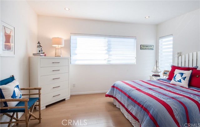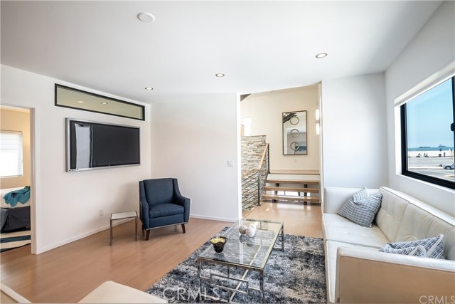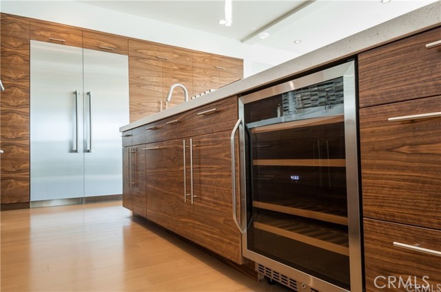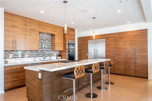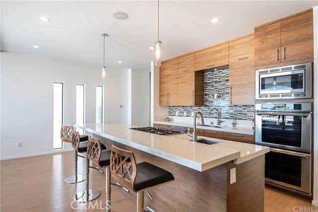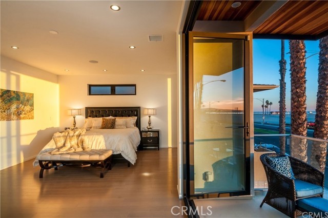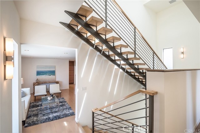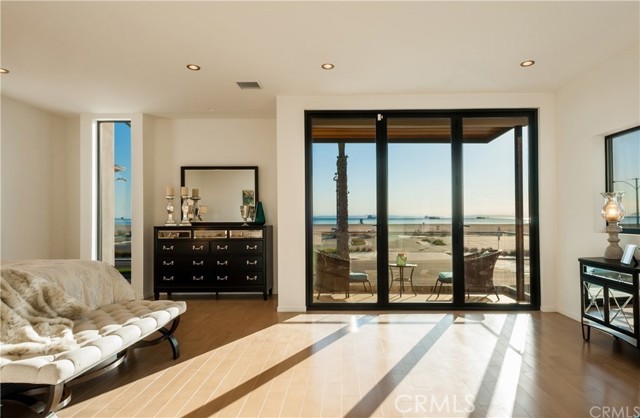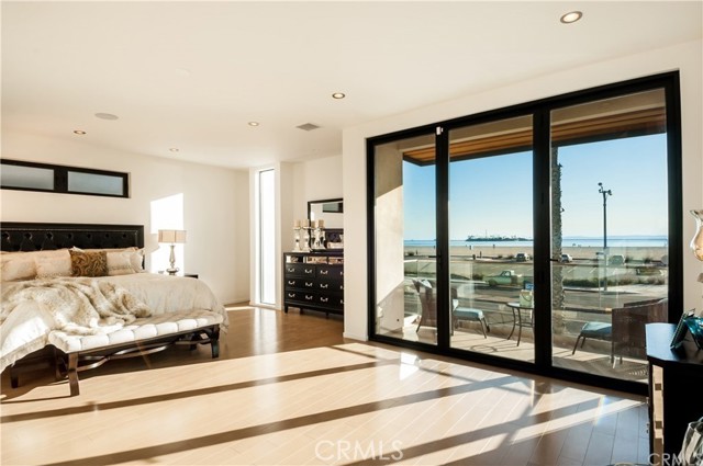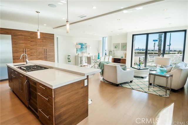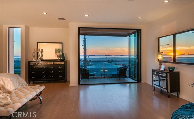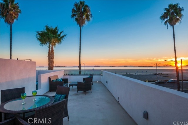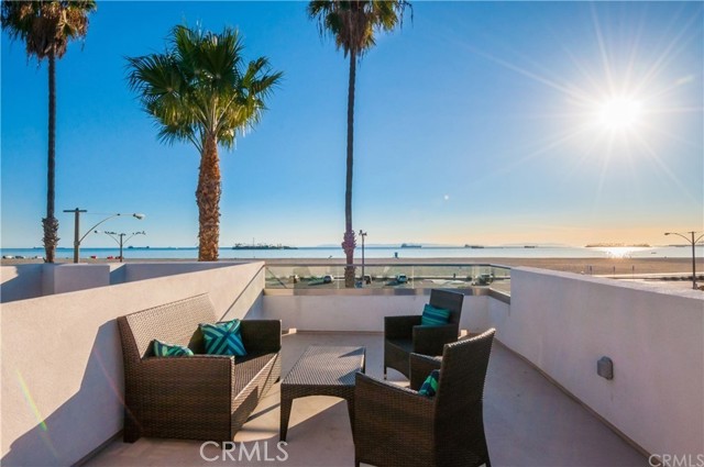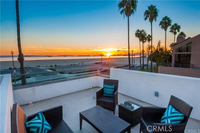 Amazing custom built contemporary in trendy Belmont Shores on its most desirable street - Ocean Blvd. Enjoy ocean views and smells of salt water from this 3 story, 5 bed, 3 Bath home that sprawls over 3000 sqft. featuring 180° views from the three decks including a 12' x 30' rooftop deck. A porcelain tiled floor welcomes you to an exquisite 30' high foyer with skylights towering over a stacked stone wall strewn with custom steel surrounding a maple staircase. The open floor plan invites you into the spacious living with bi-fold La Cantina doors that open to a front deck. Formal dining area with floating walnut & quartz buffet -- perfect for any size gathering. Eye-catching chef’s kitchen boasting sleek walnut cabinetry with under mount lighting, quartz counters, subway tile backsplash, and 11' breakfast bar, three pantries, 5 burner gas cooktop, double oven, built-in microwave, Thermador 48" refrigerator, Franke stainless steel sinks, and much more. Off the entry is an office/den with a custom oversized tile shower with seamless doors, and a floating quartz vanity. Large upstairs game room is perfect for entertaining on the flat screen. Three large bedrooms share custom tiled bath with Mirabelle full height tub/shower with detachable handheld, Koehler sinks, and Hans Grohe faucets. Secluded master retreat includes a walk-in cedar closet, perfect & private deck for watching sunsets, en-suite custom travertine bath with Kohler underscore soaking tub with quartz slab top, dual sinks, separate oversized stall shower with seamless doors. Two oversized finished garages with direct access, frosted glass roll up doors.
