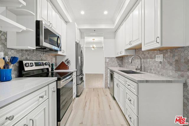 Located in the highly coveted Park Place community in the heart of Century City, this recently updated 2 bedroom, 2 bathroom condo offers a 24 hour guard gate, security, pristine grounds and luxury amenities, all while in close proximity to several of LA's most notable shopping, dining, cultural and entertainment centers. The contemporary kitchen opens to a dining area and living room that includes a private balcony facing the gardens within the complex. The spacious, sun-filled bedrooms each include a private bath. There is a separate laundry room with extra storage plus a large, private storage area located in the gated garage below, adjacent to the 2 designated parking spaces. Conveniently situated between 2 of the property's gated pool areas that include BBQs and outdoor dining/entertaining areas, Unit #215 offers easy access to all of the well-maintained facilities throughout the complex - gym, sauna, tennis and pickleball courts, walking paths for pedestrians and pets, clubhouse rooms for private events and the on-site HOA management office. Here is your opportunity to move into one of the city's most prominent zip codes and to experience unrivaled luxuries the moment you step outside your door.