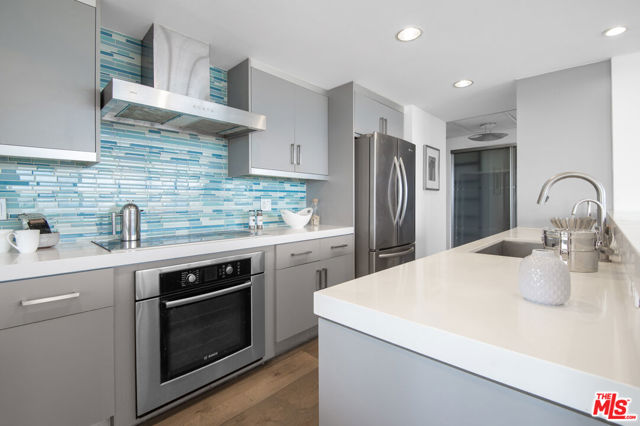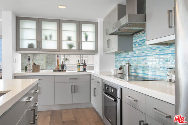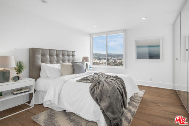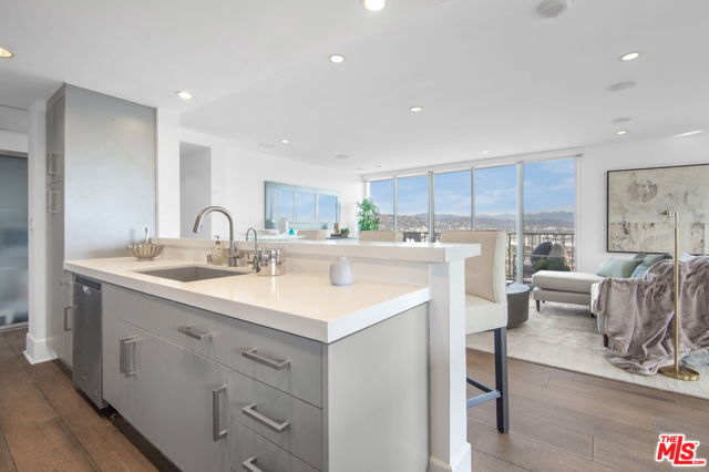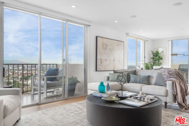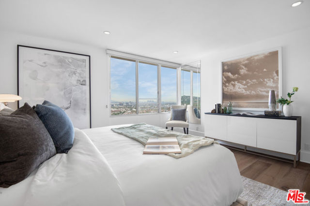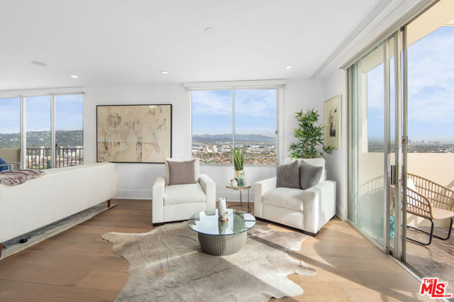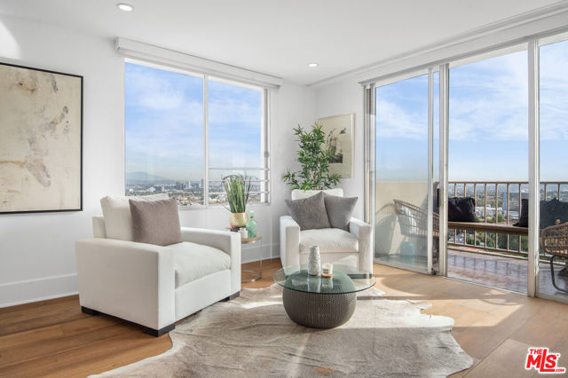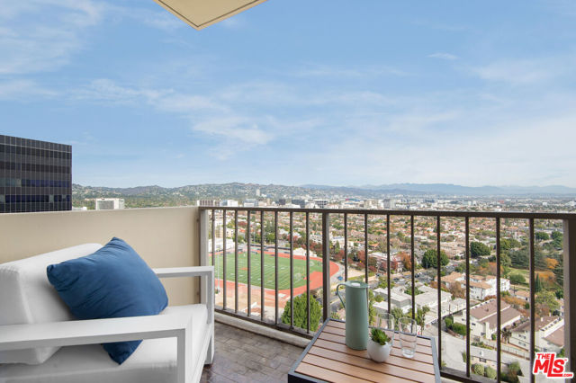 Amazing views from the mountains and across the city. Located conveniently to Century City mall, fine restaurants, Beverly Hills, and Westwood. Convenient commute to downtown and LAX. Remodeled 2 bedroom, 2 bath and den on the 19th floor unit. This southeast corner 1416 sq ft unit is light and bright with an open floor plan and feels like a much larger unit. Luxury appointments throughout; custom Italian oak floors, custom contemporary cabinets, quartz counters, stainless steel appliances, audio video wiring. Two large balconies with views forever. The building offers: doorman, houseman, valet, security staff, switchboard, fitness center, tennis courts, heated pool, gardens, pet play area.