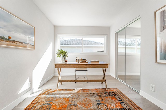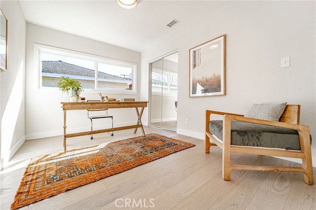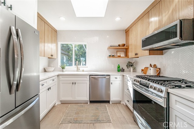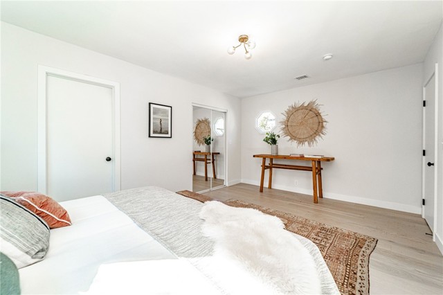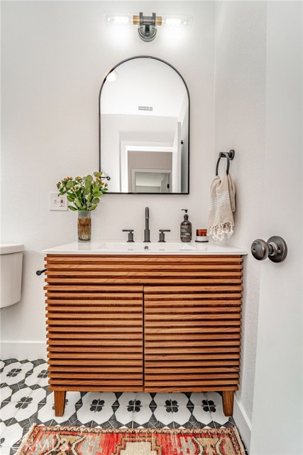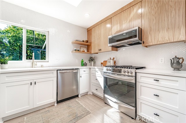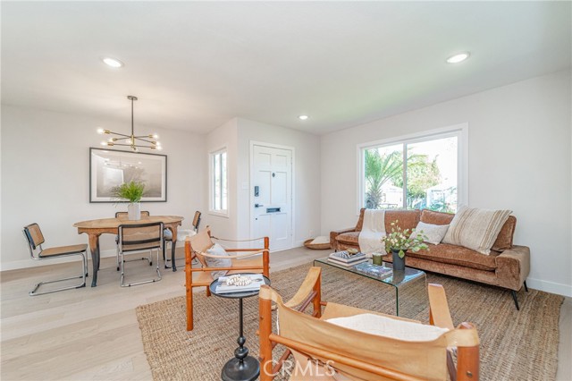 Welcome to 7451 Midfield Ave, a charming, fully re-imagined Mid-Century Transitional bungalow perfectly situated in Westchester’s highly desirable Osage neighborhood. Upon entering this 3 bed/2 bath beautifully upgraded home, you are greeted by an inviting open concept that seamlessly flows with new engineered white oak flooring, recessed lighting and designer fixtures throughout. Presenting itself as a showpiece, the stunning kitchen with an abundance of natural light, is comprised of New Calcutta Quartz countertops, herringbone tile backsplash, custom cabinetry with white oak accents & high-end stainless-steel appliances. Desirable sized bedrooms are in perfect proximity to the elegant hallway bathroom completed with new tile floor, tub, shower, beautiful vanity and remarkable finishes. The primary suite boasts 2 closets, including a large walk in, and a stunning upgraded en suite bathroom donned with elegant tile floors, new large shower, gorgeous white oak custom double vanity & more. Access your large, private backyard just off the primary and enjoy a coffee on the pergola covered patio. There is ample room to build an ADU, if you desire multi-generational living or seek additional rental income. This home has a plethora of other upgrades from a new HVAC system with Nest Thermostat, new roof, new power garage door and laundry closet. Easy access to the 405 freeway and many activities West LA has to offer. With such a perfect profile, this remarkable chic home will not last long.
