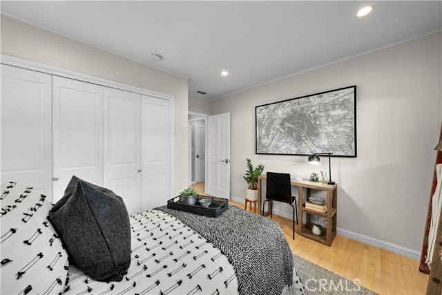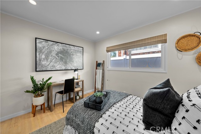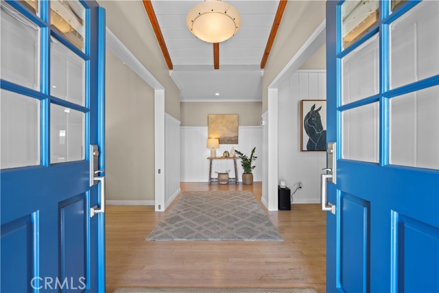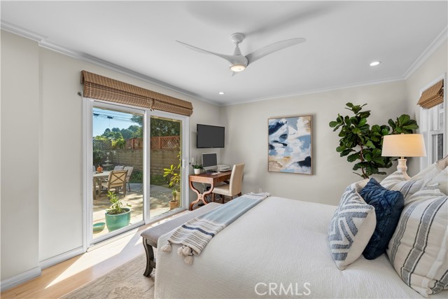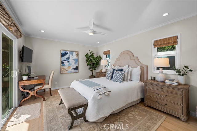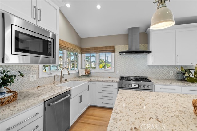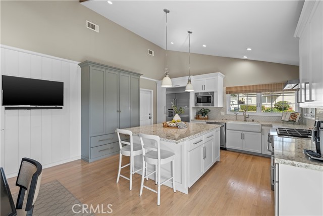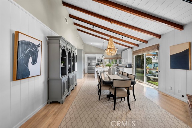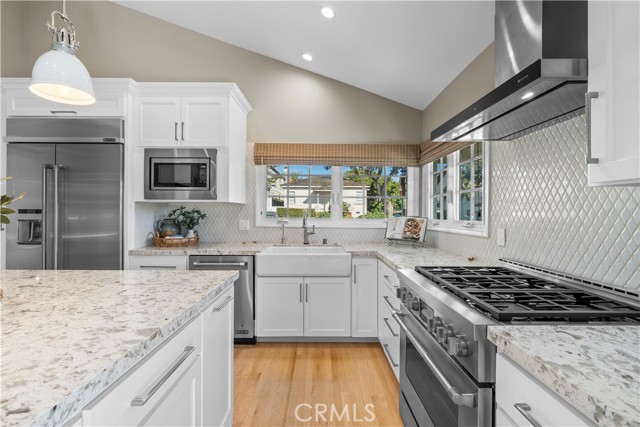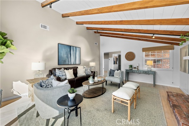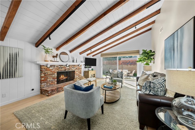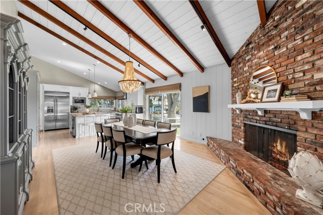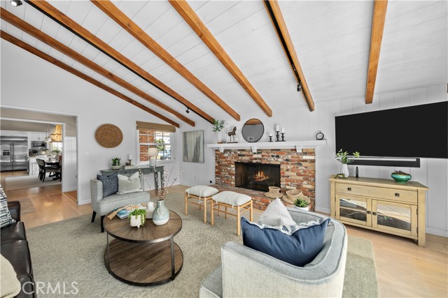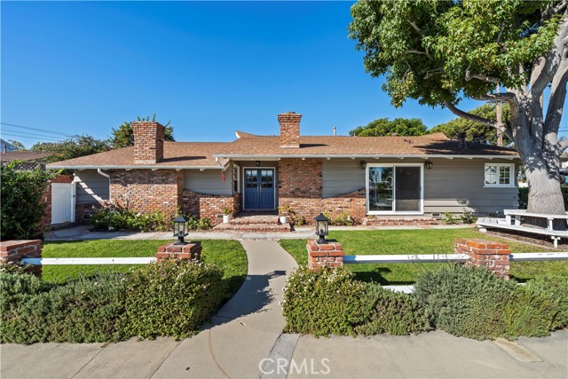 Discover a blend of timeless charm and upscale renovation at this lovely home in the Martyr’s neighborhood of the Tree section. Located on a premium corner lot in the renowned Manhattan Beach, this home is a testament to elegant coastal living. Greeted by its inviting facade, you're drawn into a recently remodeled sanctuary bathed in natural light. Rich hardwood floors guide you through its open-concept living area, where one of two exposed brick fireplaces creates a cozy ambiance. Vaulted, beamed ceilings add a nice architectural detail while making the space feel generous. Large windows and sliding doors open to a private yard, offering seamless indoor-outdoor living. The outdoor space has a beautiful flagstone patio, perfect for a dining table, as well as a grassy area for play. In the kitchen, vaulted ceilings, recessed lighting, Quartz counters, designer tile backsplash and a farmhouse sink perfectly complement the custom cabinetry, providing an elegant yet functional space. A large center island serves at the focal point in the kitchen and offers a space for food prep as well as a place for a casual meal. The suite of premium JennAir stainless steel appliances, including a wine refrigerator, built-in refrigerator and 6-burner stove elevate the quality of the cooking experience. Immediately adjacent to the kitchen, the dining area resonates with warmth, aided by the second fireplace. Sliding doors lead to the front yard area for easy entertaining and ocean breezes. The primary suite serves as a serene retreat, echoing the home's emphasis on luxury and comfort. The dedicated bathroom was remodeled with a designer marble and tile shower, marble hex floors and stunning custom cabinetry for dual sinks. This suite is rounded out with a very generous walk-in closet with custom organization. Sliding doors to the yard area let in an abundance of natural light. The two additional bedrooms are spaciously designed and executed with classic, neutral finishes. A second bathroom with a tub/shower combination has also been tastefully remodeled with luxurious tile, flooring and finishes. The attached two-car garage is both convenient and practical, catering to storage needs and offering easy access to the home.