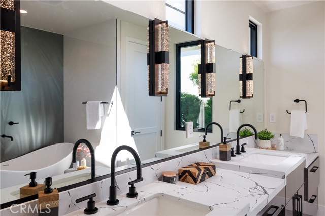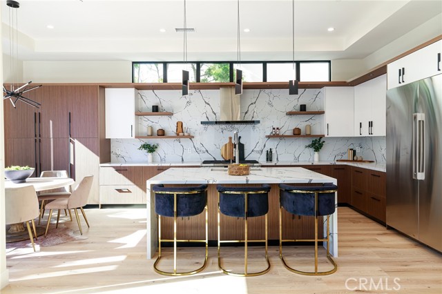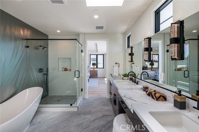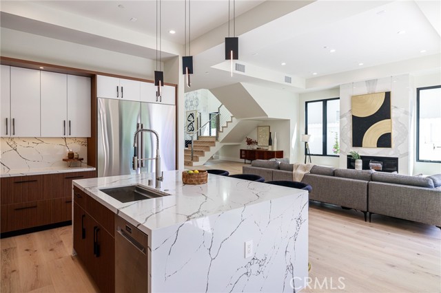 Designed by esteemed architect Louis Tomaro, this new contemporary construction beauty in the Manhattan Beach Tree section will ignite your senses. Boasting 3150 sq feet (BTV) of grand living space with an enchanting, open floor plan. This home boasts two family rooms on the first level, both with fireplaces, separated by a stairway to the bedrooms and laundry above. White ash wood flooring throughout makes the transition from room to room visibly seamless. Loads of natural light filter through the over-sized windows. The Chef's kitchen is outfitted with Dacor appliances. Formal dining room large enough to seat your next family reunion. Step outdoors thru the floor-to-ceiling glass doors to the patio and manicured backyard. Guest bedroom on this level with its own personal bath. Upstairs, the Primary Bedroom has an exquisite soaking tub, dual sink vanity and a frameless shower. Also upstairs; 3 bedrooms and/or office, each with their own ensuite baths. Laundry conveniently located upstairs also. The ever-so-charming downtown and its famous Pier a short E-bike ride away.