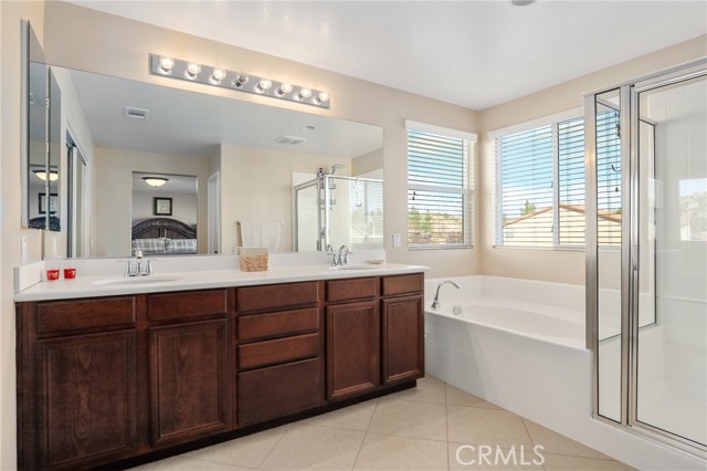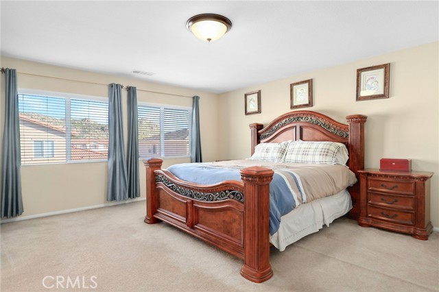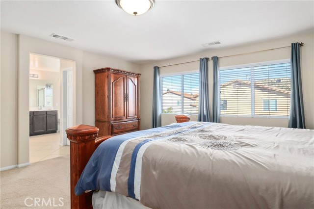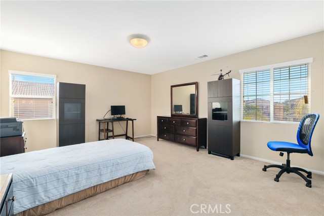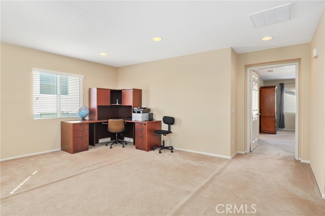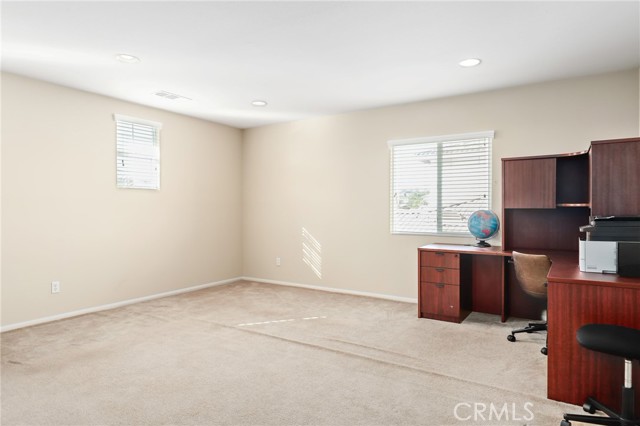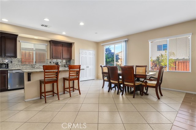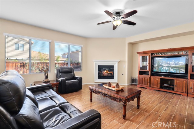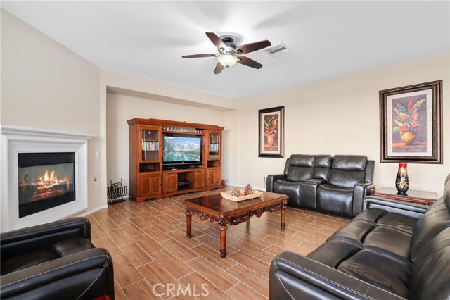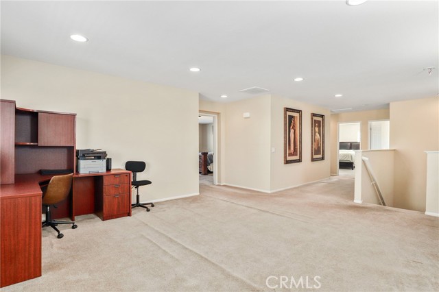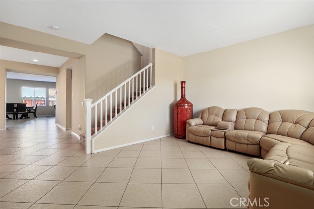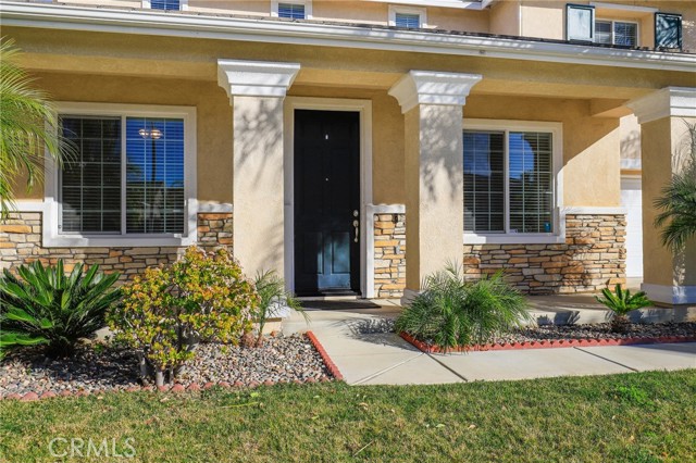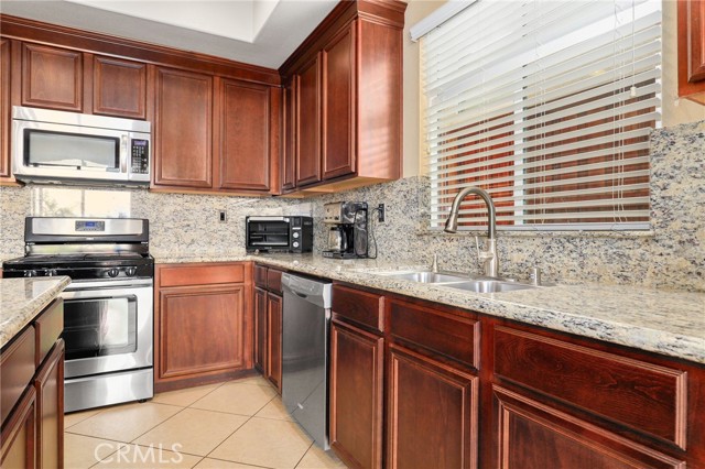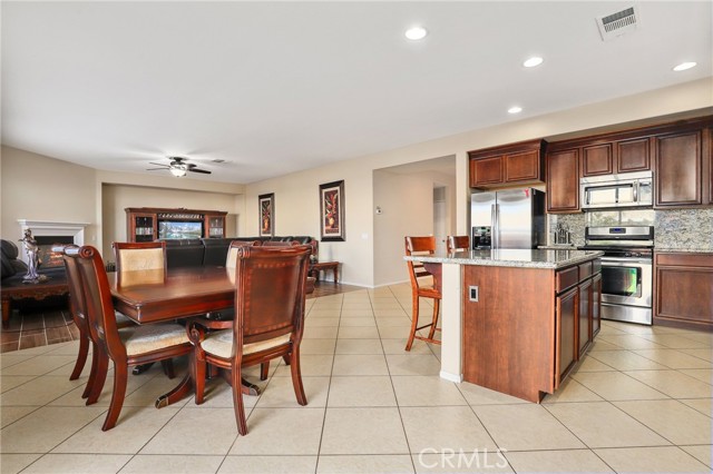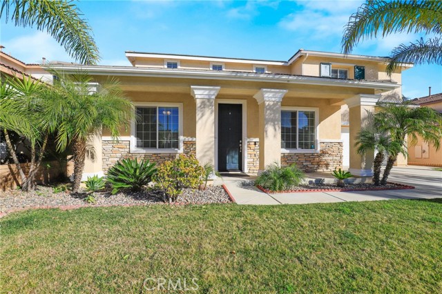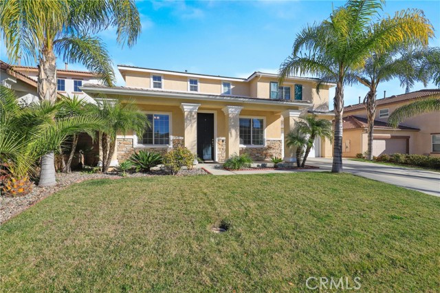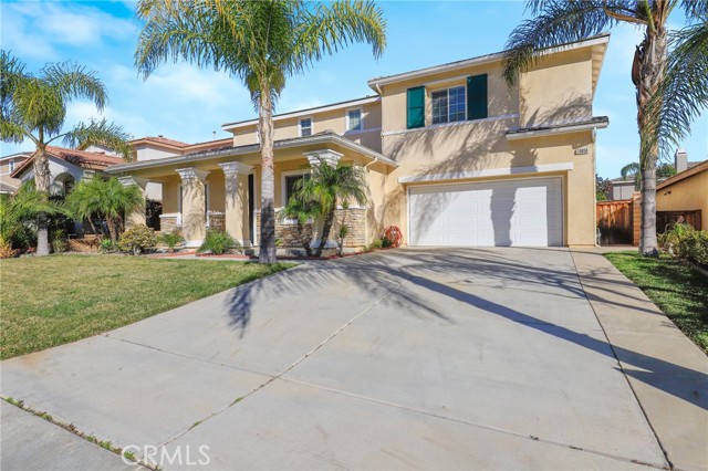 Beautiful oasis to call home! Great curb appeal with palm trees that frame the front yard. Enter into a well kept and spacious interior filled with natural light. The formal living room is off the entry and the formal dining room sits on the other side of the kitchen. There's a guest bedroom on the first floor with a full bathroom. There's tile flooring throughout the main level with carpeting upstairs. The huge family room has views of the backyard and a cozy fireplace. It's open to the kitchen with another dining area. The kitchen features a center island for plenty of prep space and bar seating. Granite countertops coordinate with richly hued cherry cabinets and stainless steel appliances. The pantry has ample storage space. Upstairs offers a versatile loft space and four additional bedrooms. The primary suite has an en suite bathroom with separate soaking tub and shower and a walk in closet. The backyard has a nice concrete patio space for entertaining and lounging and a lush grassy area framed by a planter with fruit trees and mature plants. The attached garage contains a bonus room that is currently used as a mini gym. Located in a clean neighborhood with nearby convenience to local markets, shopping centers, dining options and schools. Come see all this home has to offer!