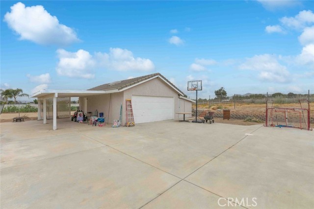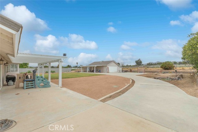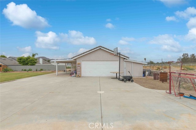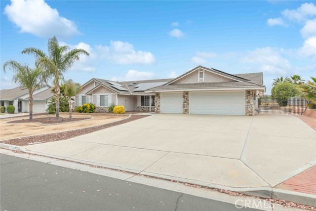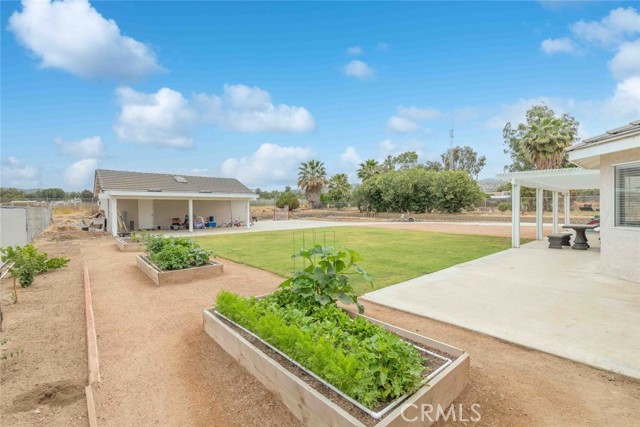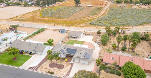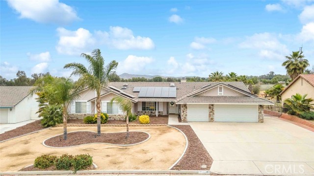 Have you been waiting for "the one" to come along? Well stop waiting! This beautiful Nuevo ranch style home has room for ALL the things!! With just under a half acre of perfectly flat land there's room for animals, RVs, gardening, future pool/spa, trailers and parking galore. At the front is a large 3 car garage with epoxy flooring. The back garage/shop is 20x30, 600 square feet and could be used for so many purposes. Check with the county it could be converted to an ADU unit for additional living space, rental unit or many other possibilities. Inside this gorgeous 4 bedroom home you will find an open flowing floorplan with a huge master wing. The extra spacious master has a five piece en suite bathroom and master retreat with gas fireplace. On the other side you will find 3 additional bedrooms & great closet storage. The home has been tastefully updated with LVP flooring and the kitchen features all new cabinets, stainless steel appliances and beautiful granite countertops. The second and third bathrooms have been updated as well. One of the best parts, an inside laundry room, located centrally in the home for quick access & privacy from guests. Along with the amazing shop the backyard features raised planter beds and an active chicken coop that will stay and include chickens. Save money all year with SOLAR!! Located on a quiet paved cul-de-sac with LOW tax base and no HOA means a low cost of ownership. Come see this one today before its gone!