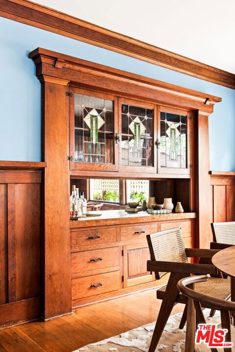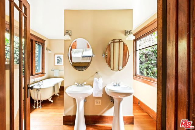 Nestled in the heart of the highly sought after Bungalow Heaven district in Pasadena, this exquisite Craftsman home, built in 1908 by Frederick Benjamin Speicher, exudes timeless charm and historical preservation with Mills Act designation. Situated on an expansive 10,129 square foot lot with 2,032 square feet of living space, this 3 bedroom, 2 bathroom residence offers a captivating glimpse into the past while providing the ideal canvas for contemporary living. Upon entering, you'll be greeted by a warm open floor plan with original hardwood floors and built-in wood and stained-glass cabinetry. The inviting main floor primary bedroom has French doors to the large, light-filled en suite bathroom with separate claw foot tub and shower. There is another large additional bedroom on the main floor and a finished attic used as the 3rd bedroom. The kitchen is sunny and welcoming, with butcher block countertops, original wood cabinets and an O'Keefe and Merritt stove. The newly landscaped yard is adorned with citrus, oak, fig and pomegranate trees; the perfect setting for outdoor dining, gatherings and play. Additional updates include central air and heat, copper plumbing, and a reinforced foundation. A wonderful community close to MacDonald Park, Lavender and Honey, Millie's Cafe, Seed Bakery and Roma Market, amongst many other amenities. Don't miss this special home.