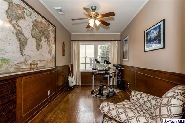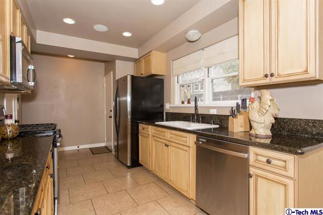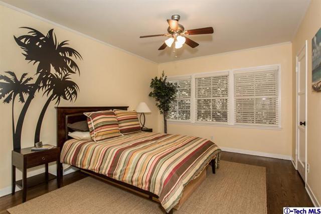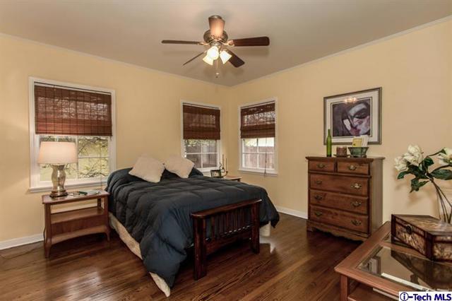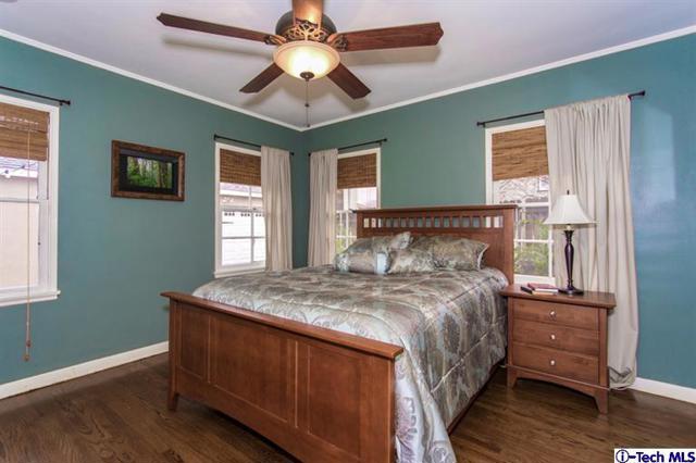 This inviting home situated in the wonderful Bungalow Heaven area offers 3 bedrooms and 2 bathrooms on an expansive, beautifully landscaped lot. You are welcomed into this home by a cozy living room which is framed by a large bay window illuminating the rest of the space. The updated kitchen features granite countertops, stainless steel appliances and a quaint eat-in area. Gleaming hardwood floors take you through the formal dining room and into the 3 bedrooms, all of which have ceiling fans and spacious walk-in closets. Apart from the 3 bedrooms, there is also a bonus room which can be used as an office or study. The master suite has a walk-in closet and a great attached bathroom reminiscent of a spa with granite countertops, double sink vanity and walk-in shower with 2 showerheads. The backyard is a great entertaining space with its spacious paved patio overlooking the professionally landscaped yard showcasing various fruit trees and planter boxes, creating a tranquil oasis.