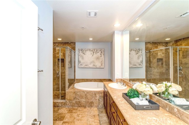 The beautiful condo is located in the heart of Pasadena’s Historic Playhouse District! Built in 2004, the property is well maintained. 2 Bed rooms and 3 bath rooms. There is a Den, which can be used as a third bed room. Great Floor plan. Since it is only one floor, it is spacious and no waste of living area of stairs. The updated kitchen has stylish cabinet, granite countertops, and stainless appliances. The master suite is enormous, complete with double sinks, a soaking tub, large shower, and two closets, including walk in closet. Living room has a fireplace, and you can walk in to the balcony (10’x7’) and a private courtyard approximately 180 square feet. It also comes with a laundry room. Appliances include range, microwave oven, refrigerator, TV, washer, and dryer. Two parking spaces P145 and P146 next each other at parking level one. There are always available visitor parking spaces. Storage room about 82 sq ft. at basement in parking level one. Enjoy this amazing condo complex with fitness center, court yard, gated parking, and guest parking area. HOA includes water, trash, building insurance, and common area maintenance. Within 10 minute walking distance to Playhouse Village Park, Metro L Line (Gold) Lake Avenue Station, Ralphs, Target, Starbucks, and many stores and restaurants. Close to old down Pasadena, PCC, and Cal Tech.