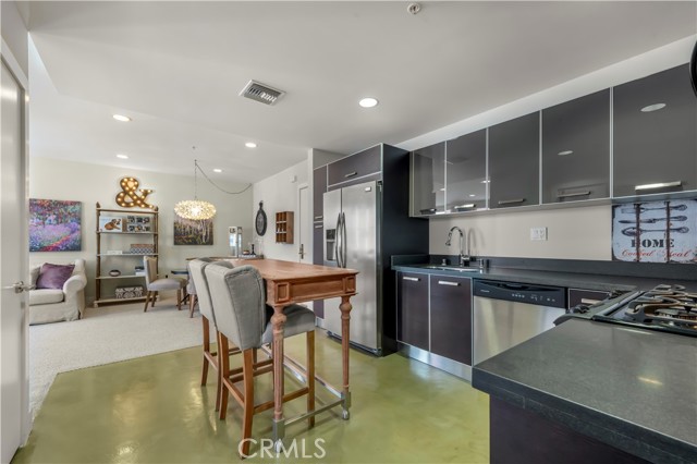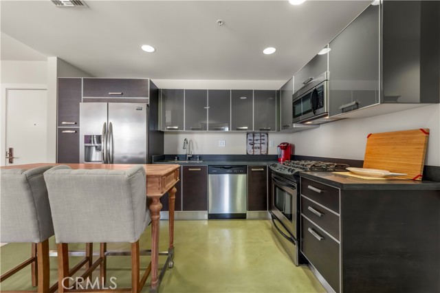 This stylish and transformed condo resides in the award-winning landmark Livingston Hotel, built in 1927. The original design was by local influential architect Myron Hunt and Walter Webber. The renamed Livingston Condos seamlessly combine contemporary elements like recessed lighting and polished concrete floors with details characteristic of the building’s history, like refurbished brick walls and the original sign installed in the 1940’s. An elegant lobby beckons you inside, and the updated elevator with an old-timey feel lets you know what’s in store. The sleek modern aesthetic of this condo provides great coziness, from the bright and airy living area to the shimmering open kitchen. Included are all the appliances along with the in unit washer and dryer. The bedroom feels extra spacious with its taller ceilings, and the updated bathroom features a combined shower and tub with a frameless glass shower door. The reasonable HOA dues of $356.03/month include water, gas, and trash as well as the community maintenance. The building includes central heating and cooling, and the condo comes with one assigned parking space. Located near everything there is to love about the heart of Pasadena.
