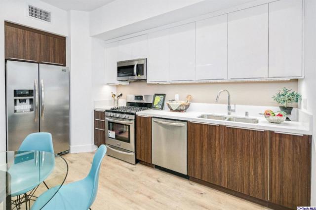 Monaco Terrace. One-year leases. Unit 203 is a second floor west-facing flat among twenty-one hip, handsome well-appointed townhouses and flats Located within walking distance of the Del Mar Gold Line station and all Pasadena's shopping, civic, commercial and recreational venues. Spacious floor plans ranging in size from one-bedroom upper floor flats, two-bedroom flats on all three levels, and three-bedroom townhouses. Floor plans, site plan, and all materials available at nearby Pasadena Information Center. Amenities include center garden court with mature landscaping and sitting areas. Two-car parking in subterranean covered individual garages. All units have patios, balconies or both. Laminate wood floors and concrete tile kitchen and bath flooring. Quartz counter-tops and modern polished white cabinetry in kitchen and baths Stainless steel Frigidaie appliances in kitchen. Refrigerator, washer and dryer included.